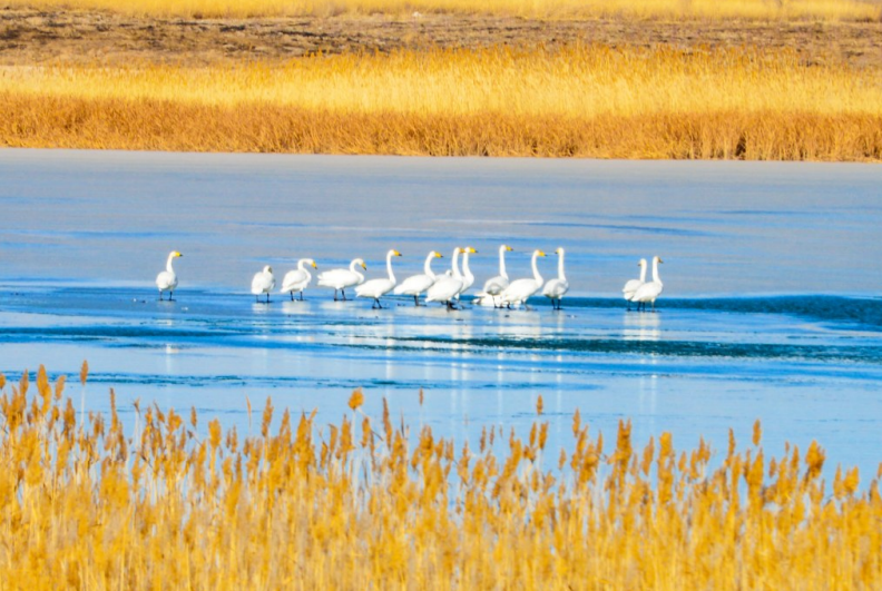 近日,嘉峪关草湖国家湿地公园迎来十几只越冬大天鹅,它们或展翅翱翔于澄澈湖面,或嬉戏游弋,或梳理羽翅,灵动身影与湿地风光相映成趣,构成一幅韵味十足的冬日生态图景。