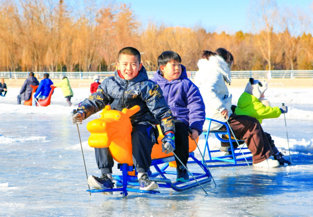 1月10日,东湖生态旅游景区冰雪嘉年华活动吸引市民沉浸式体验各类趣味滑冰项目,尽情畅享滑冰乐趣。马玉福 摄