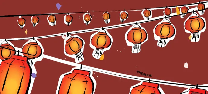中秋月圆夜在公共场所挂着许多灯笼,人们都聚集在一起,猜灯笼身上写的谜语。