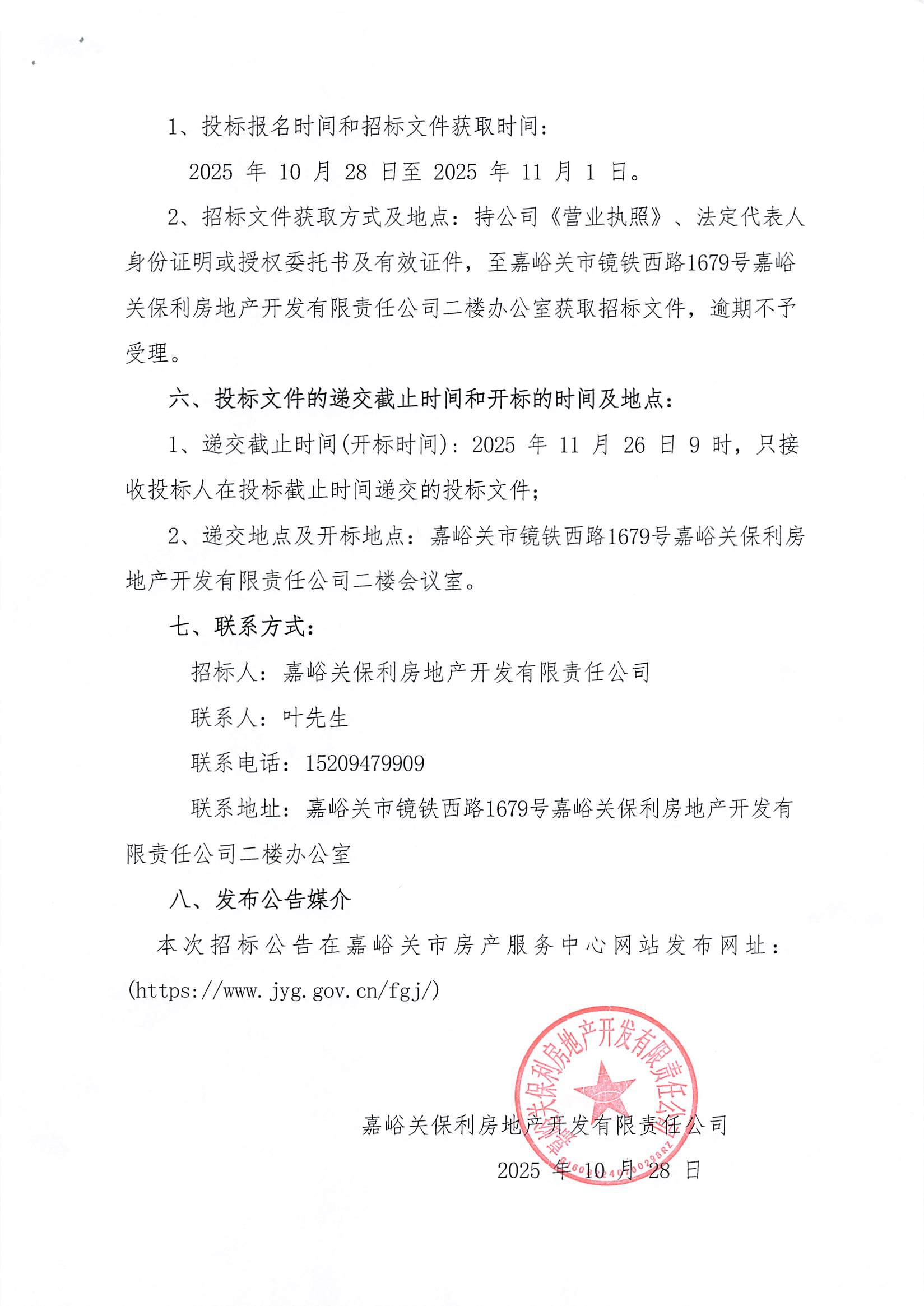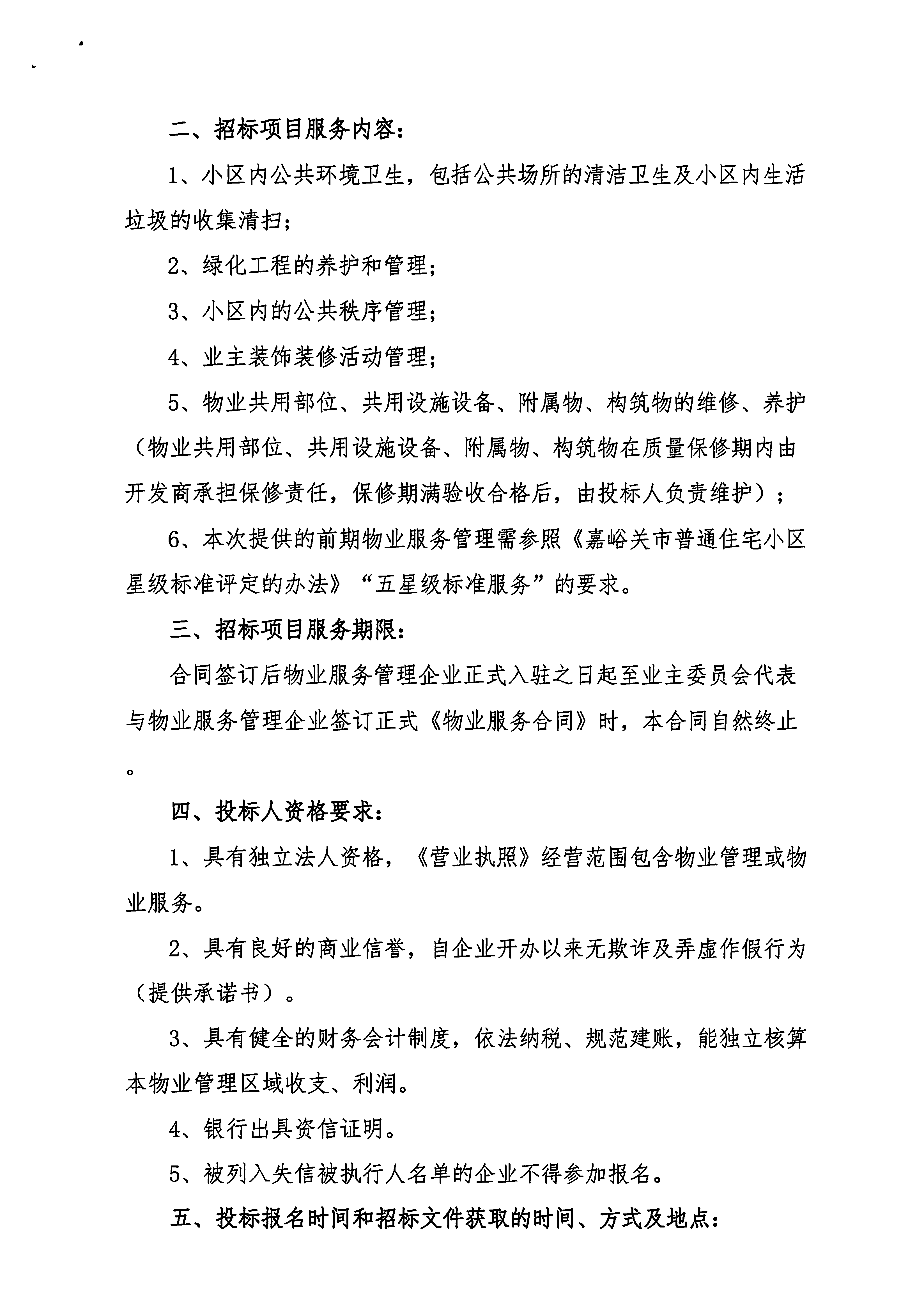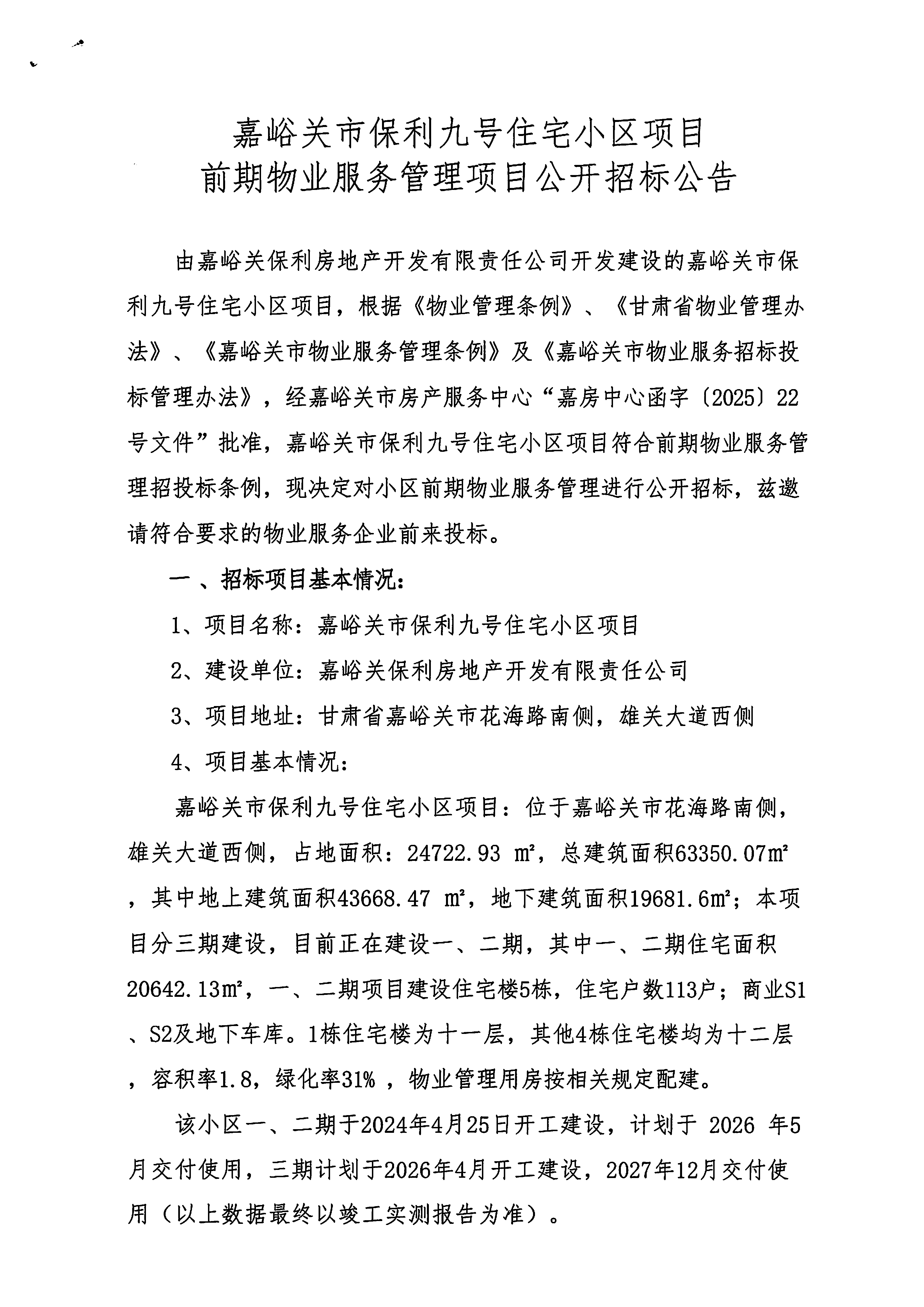 嘉峪关市保利九号住宅小区项目前期物业服务管理项目公开招标公告