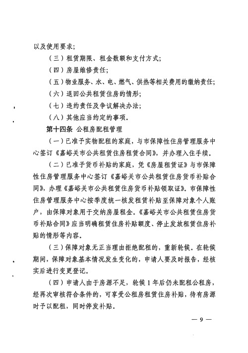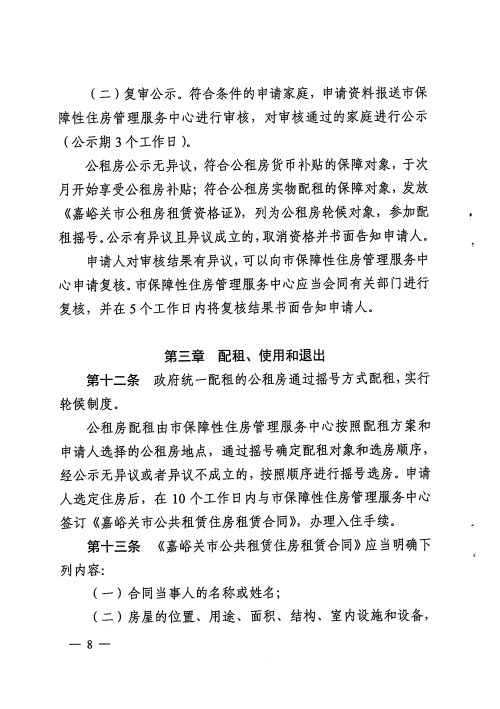 嘉峪关市公共租赁住房管理实施细则