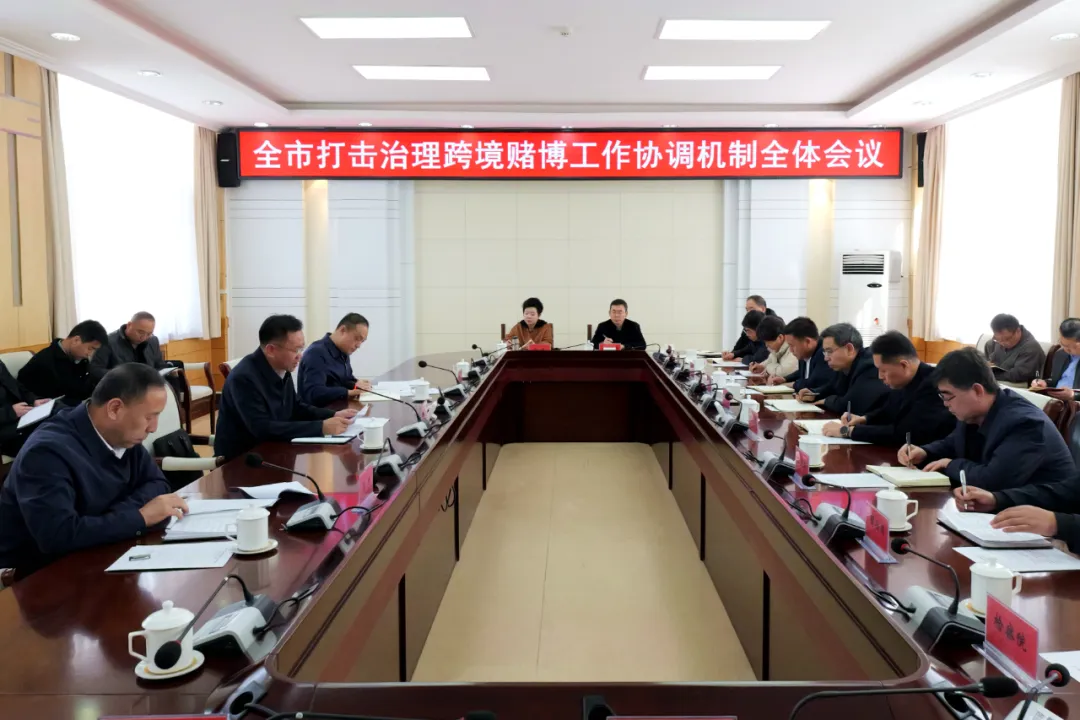 会议指出,2024年以来,在省机制办和市委市政府的坚强领导下,全市各级各部门聚焦“坚决遏制跨境赌博乱象”的工作目标,坚持网上网下一体、境内境外联动,以最高站位、最大决心、最强力度,深入推进打击治理跨境赌博各项工作,成功侦办了一批跨境赌博案件,打击治理跨境赌博工作取得了一定成绩,有力维护了全市经济安全和社会稳定。会议强调,要提高站位、认清形势,在纵深推进打击治理上持续发力。全市各级各部门要进一步提高政治站位,全面吃透“上情”、充分掌握“下情”、积极借鉴“外情”,不断增强工作的预见性、主动性和针对性,不折不扣将党中央决策和省市要求落实到位。从复杂形势中认清现状,充分认识到跨境赌博的严重危害,采取有力措施加强打击整治,从自身的短板中找准方向,针对工作机制、打击质效、案件攻坚等方面的问题,着力改进提升,不断增强打击治理跨境赌博的能力和水平。要协同联动、系统治理,在凝聚打击治理合力上持续发力。各单位之间要打破部门壁垒,强化联动协同,实现信息互通、情报共商,各尽其责提供线索支撑,形成强大工作合力。要加强区域联动,与周边市县建立常态化协作机制,依托“化解矛盾风险、维护社会稳定”“打击重点突出跨境违法犯罪”等专项行动,紧盯跨境赌博关联领域,打链条、打生态,打团伙、打集群,依法查处相关不法行为,织密打击治理网。要标本兼治、综合施策,在切实筑牢防控体系上持续发力。持续重拳打击,深化源头治理,构建起人防、物防、技防深度融合的立体化防控体系,利用大数据等手段,严格落实相关要求,严惩涉赌人员,打击相关违法违规行为。行业监管部门要切实履行监管职责,建立健全相关机制,堵塞管控漏洞。要积极拓展宣传渠道,创新宣传手段,全方位、多角度地开展禁赌宣传教育活动,努力营造“全民禁赌、拒赌、反赌”强大声势和舆论氛围。要靠实责任、优化保障,在不断提升整体质效上持续发力,各单位要靠实工作责任,将打击治理跨境赌博工作纳入本单位重要工作议程,结合自身职能,细化工作措施,明确责任分工,确保各项任务落到实处。要强化督导奖惩机制,充分调动各方面的积极性。要强化法制保障,加强法律指导,破解难题。在工作过程中,严格执行相关制度规定,规范执法行为,防止出现违规执法和舆情炒作等问题。