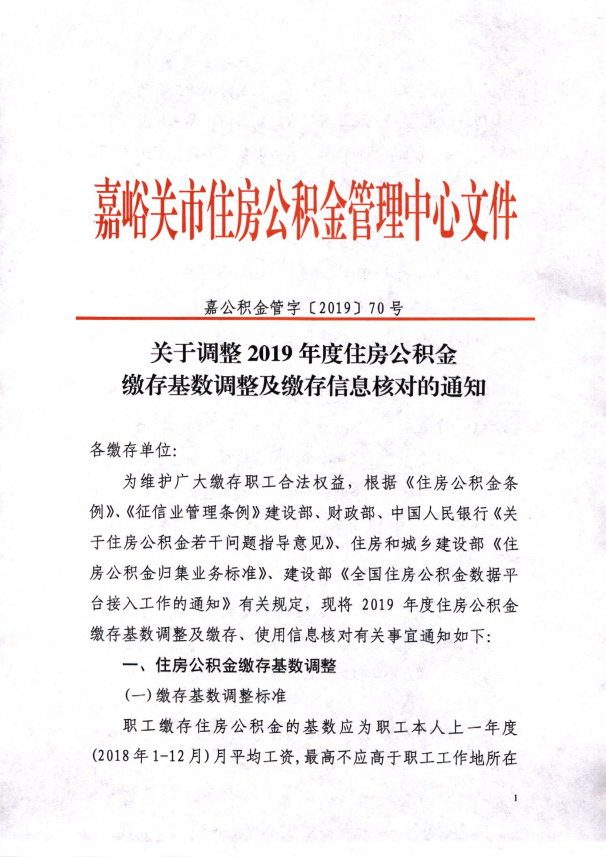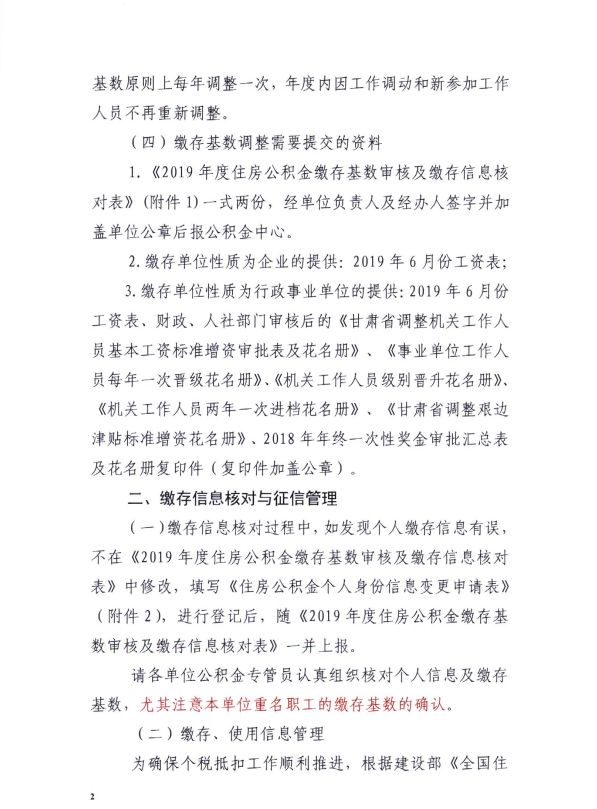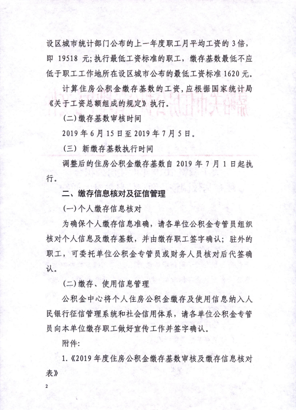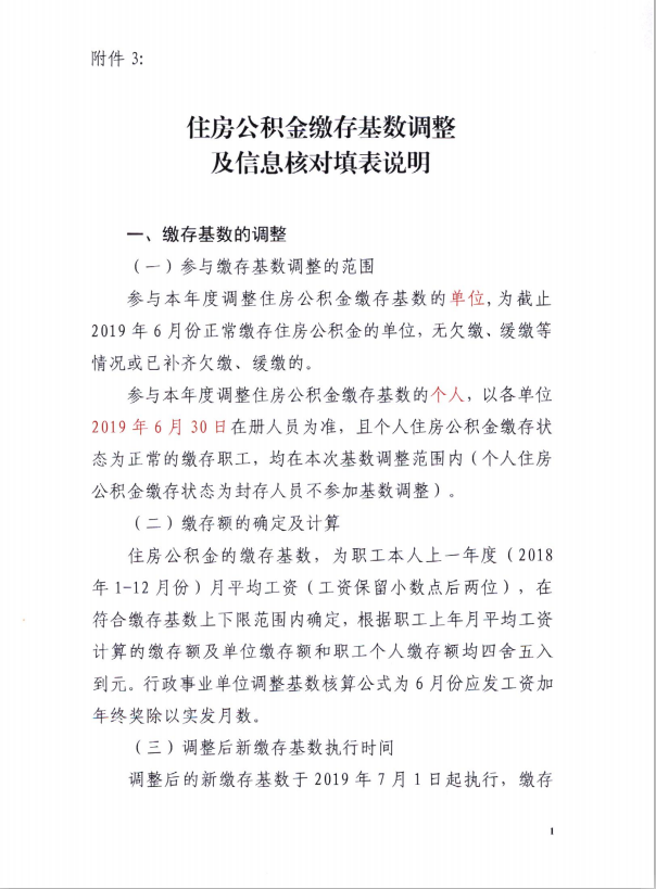 关于调整2019年度住房公积金缴存基数调整及缴存信息核对的通知