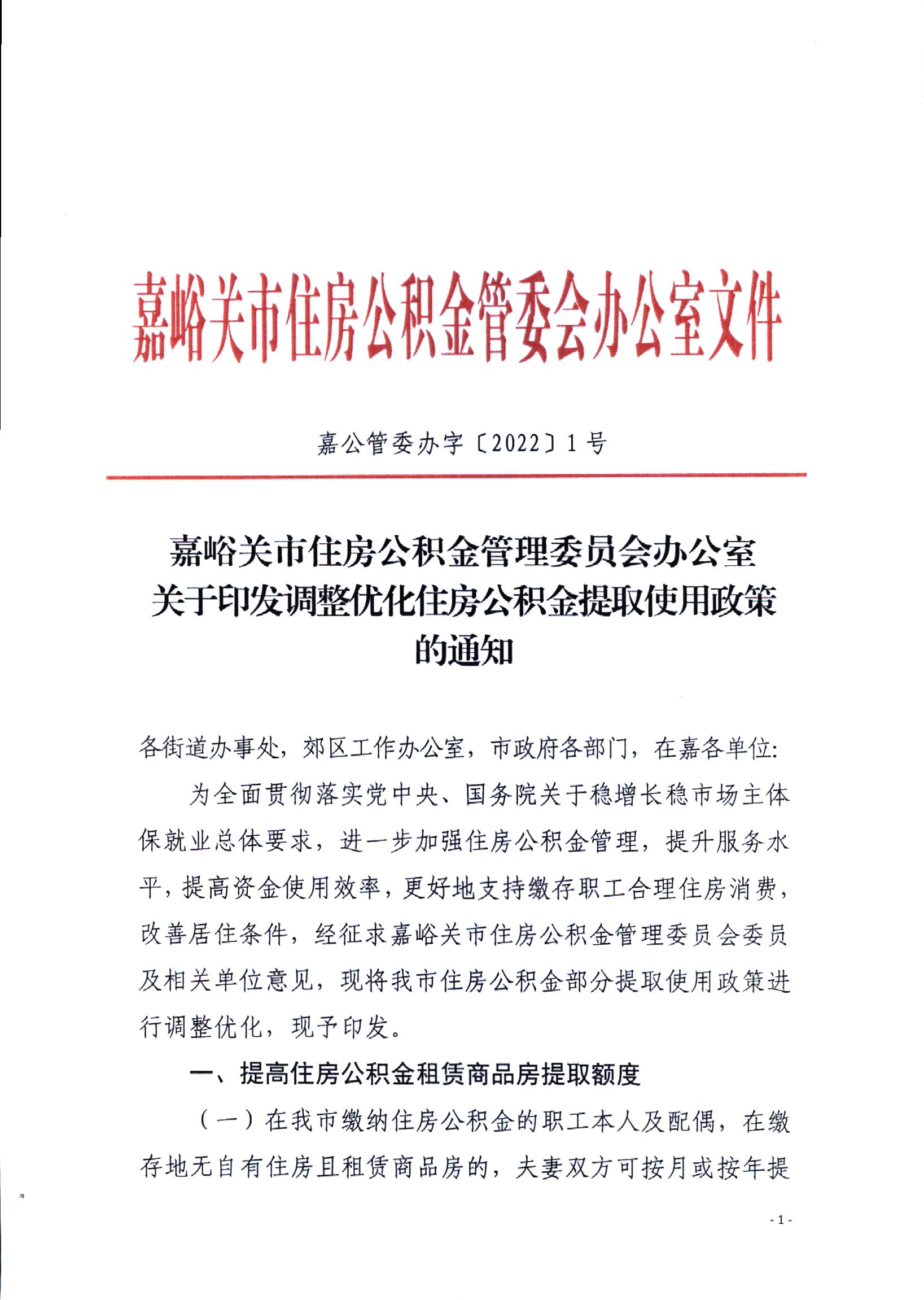 嘉峪关市住房公积金管理委员会办公室关于印发调整优化住房公积金提取使用政策的通知