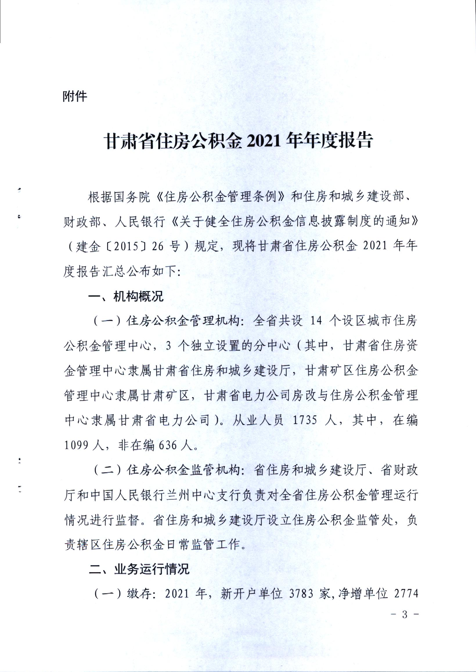 甘肃省住房和城乡建设厅甘肃省财政厅中国人民银行兰州中心支行关于印发《甘肃省住房公积金2021年年度报告》的通知