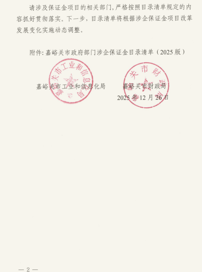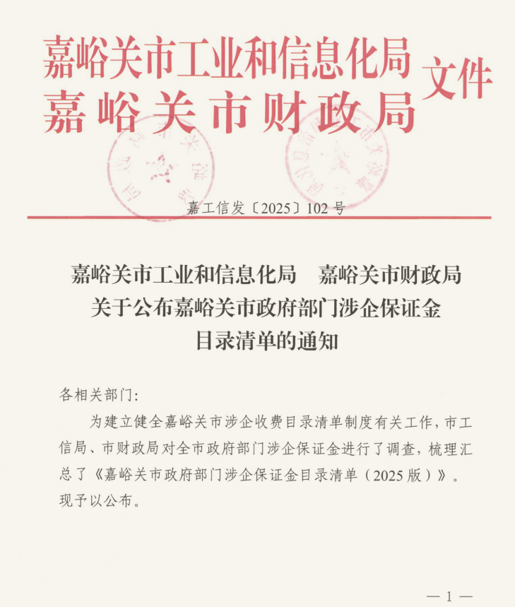 嘉工信发〔2025〕102号--关于公布嘉峪关市政府部门涉企保证金目录清单的通知.pdf