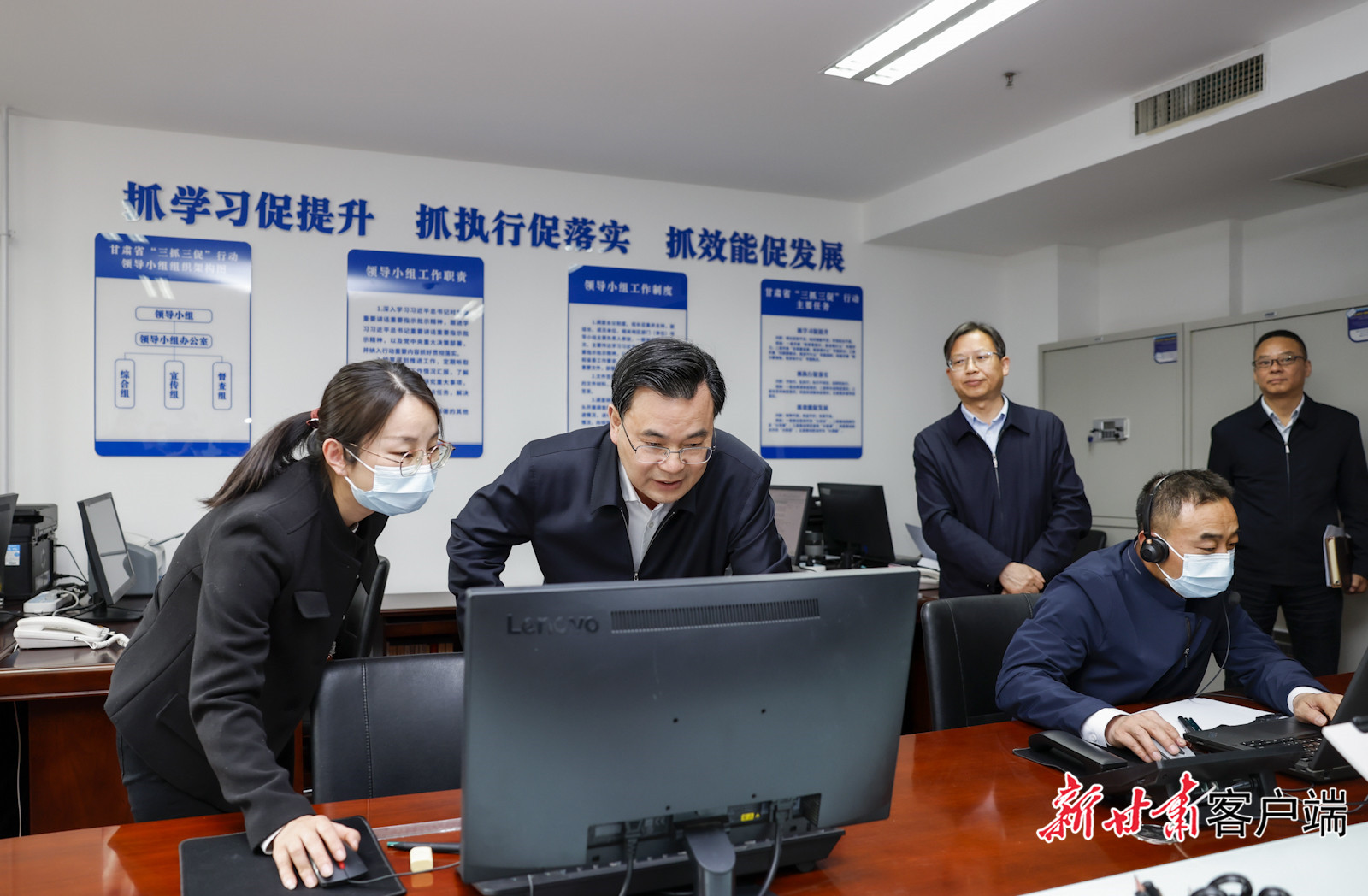 胡昌升首先来到省“三抓三促”行动领导小组办公室,调研了解全省“三抓三促”行动开展和问题化解情况。他指出,“三抓三促”行动是开展主题教育的重要载体和抓手。行动开展以来,各项任务有力有序有效推进,群众诉求解决、营商环境优化、历史遗留问题化解等重点工作取得了阶段性成效。要把准主要目的,切实增强工作的针对性实效性,坚定不移推动“三抓三促”行动各项任务往深处走往实处走。要坚持问题导向,勇于直面历史遗留问题,集中力量攻坚克难,加强问题跟踪督办,以实际成效取信于民、赢得认可。要促进作风转变,下功夫整治存在的“官本位”“庸懒散”和“七不为”等突出问题,依法依规严肃问责追责,激发干部豪情壮志,以强烈的担当、奋进的姿态推进工作落实,积极投身中国式现代化甘肃实践。