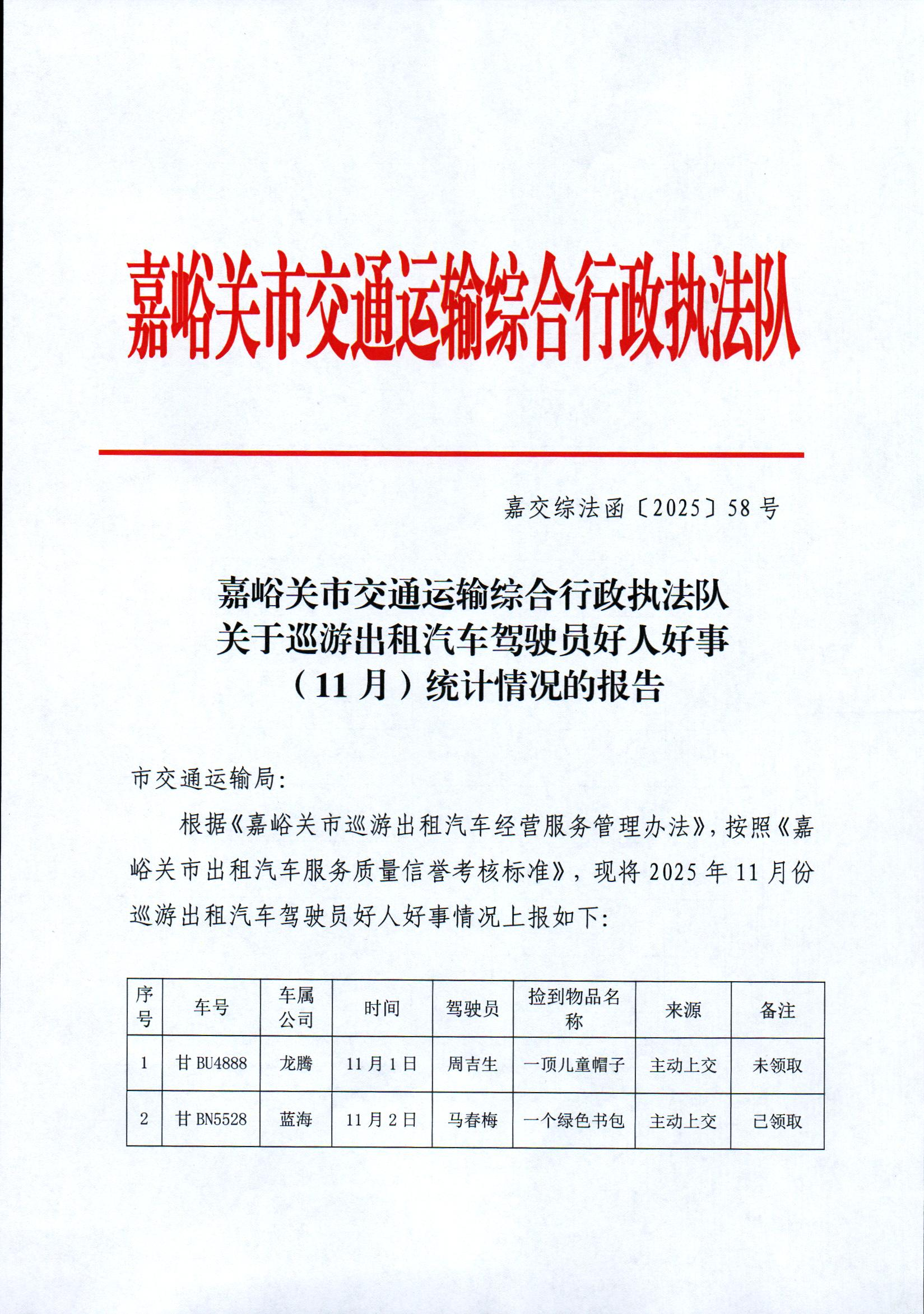 诚信专栏丨刚刚!嘉峪关43名的哥的姐被通报表扬!