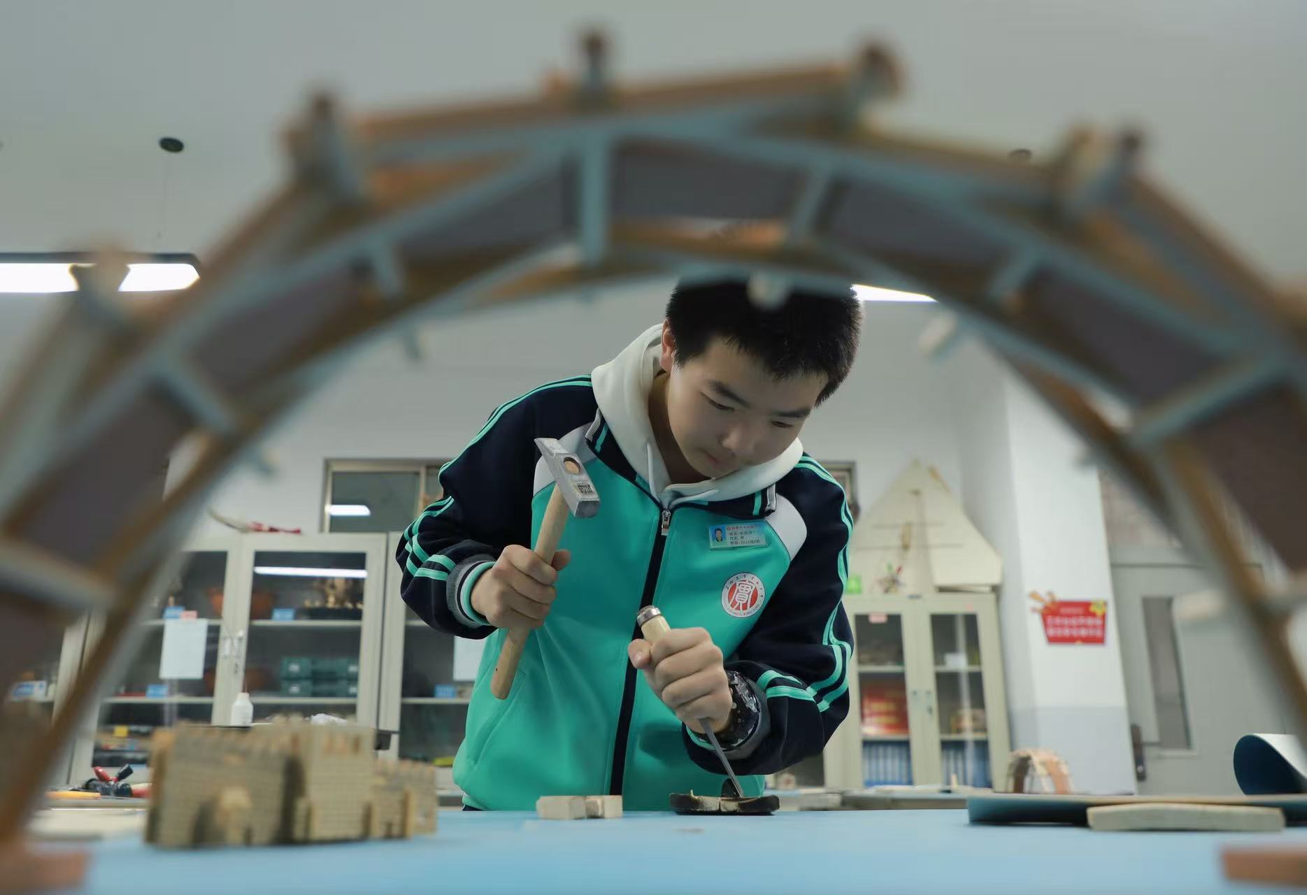 每周二,嘉峪关市实验中学的社团活动如约而至。在“爱迪生社团”课堂上,社团指导教师朱永军耐心地为学生们讲解木工知识——从木材的属性到工具的运用,从切割、打磨的技巧到复杂的榫卯结构。