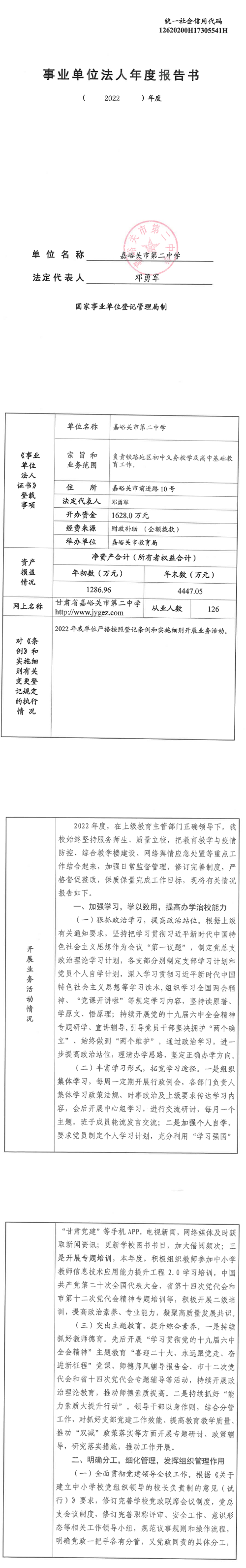 嘉峪关市第二中学事业单位法人年度报告书(2022年度)