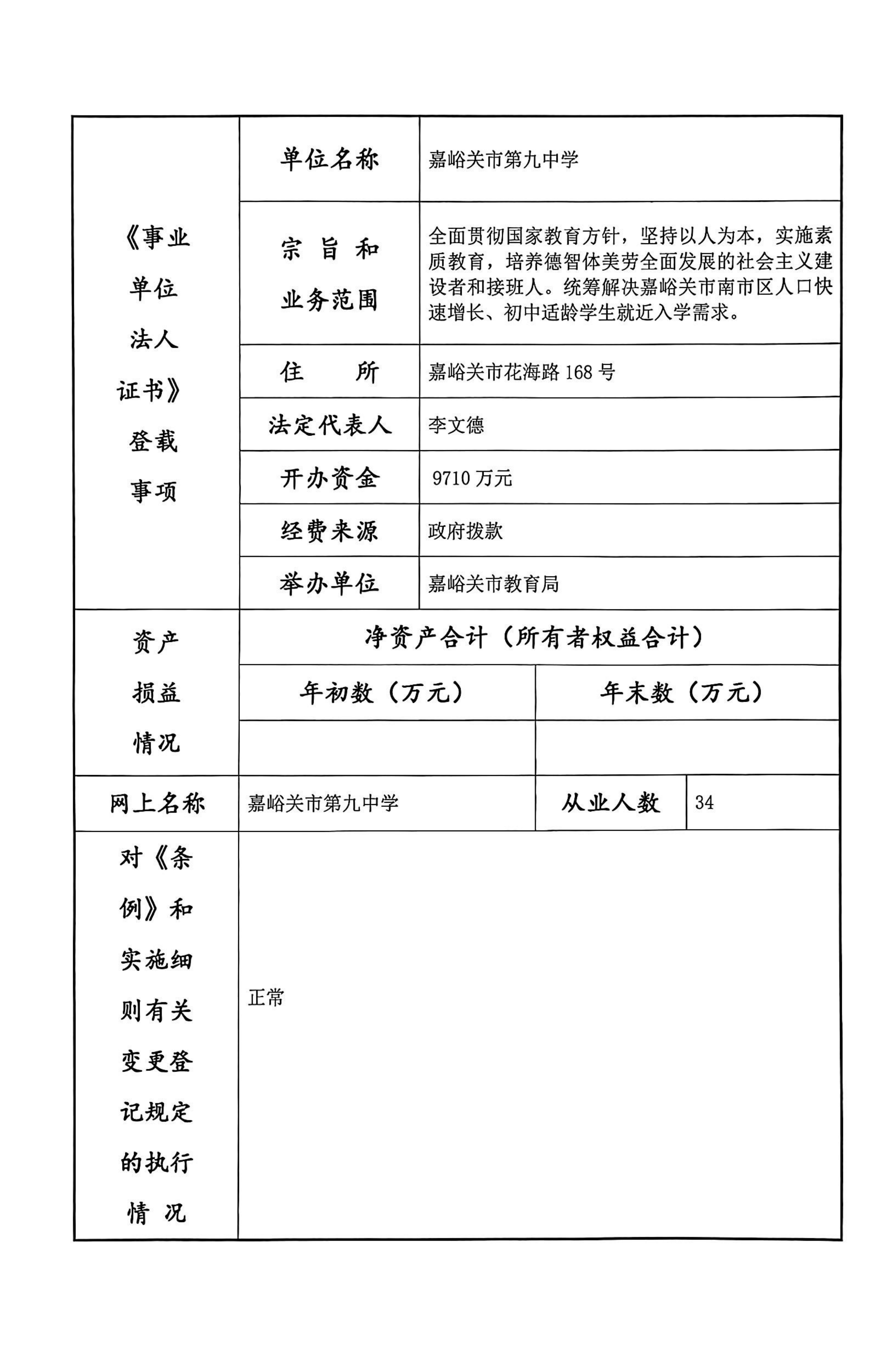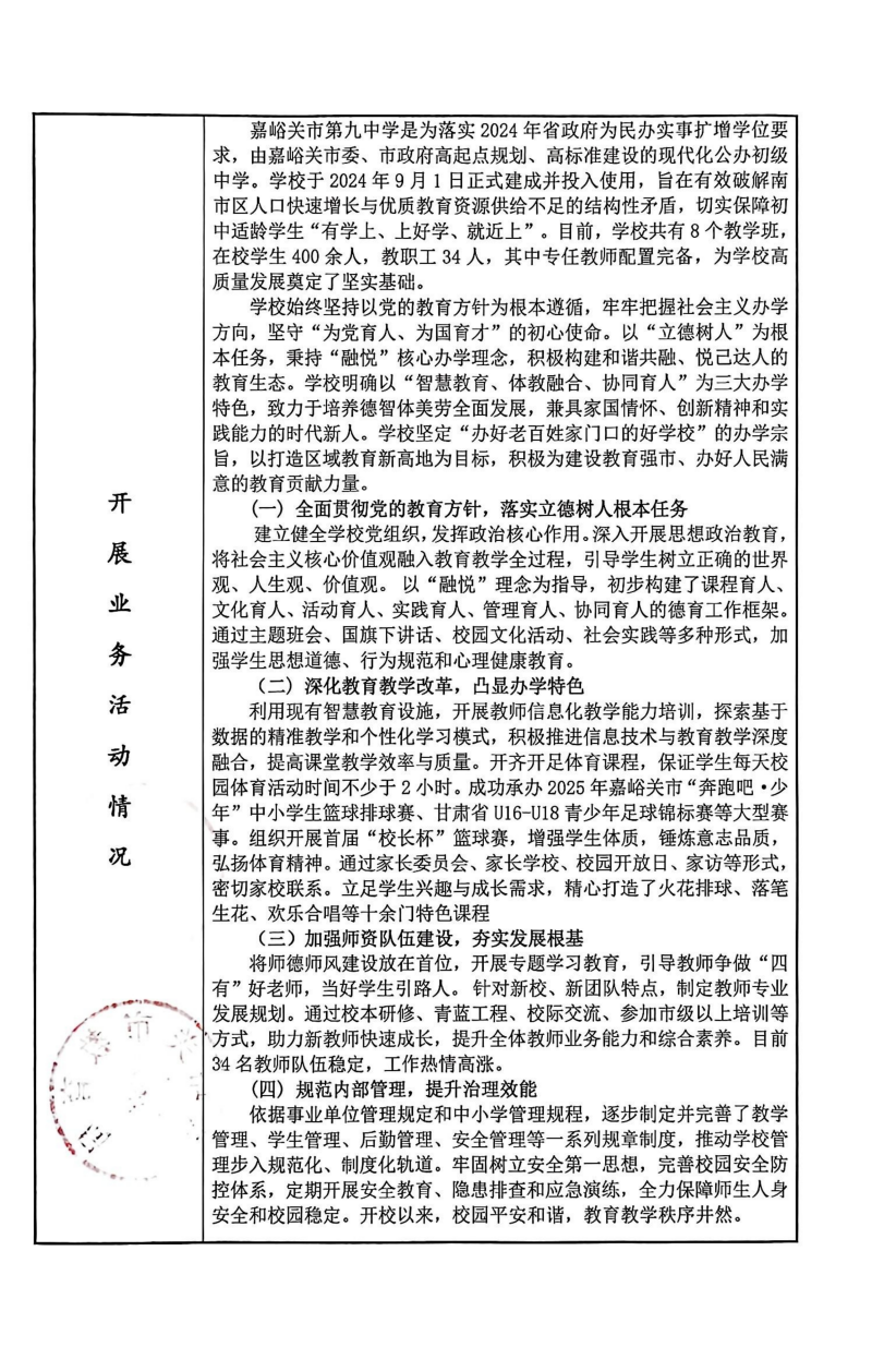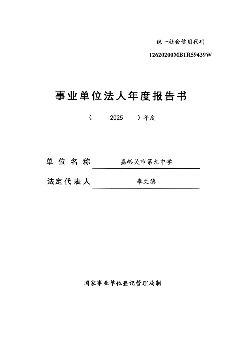 嘉峪关市第九中学事业单位法人年度报告书(2025年度)