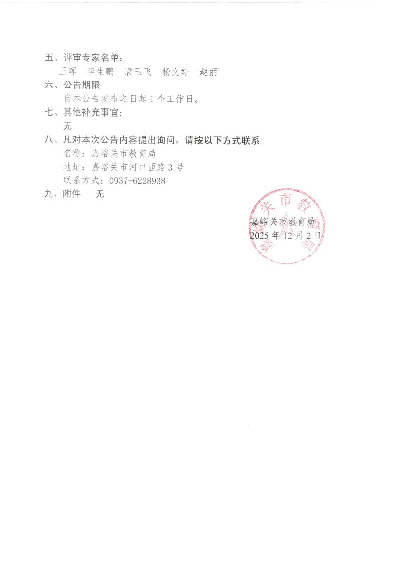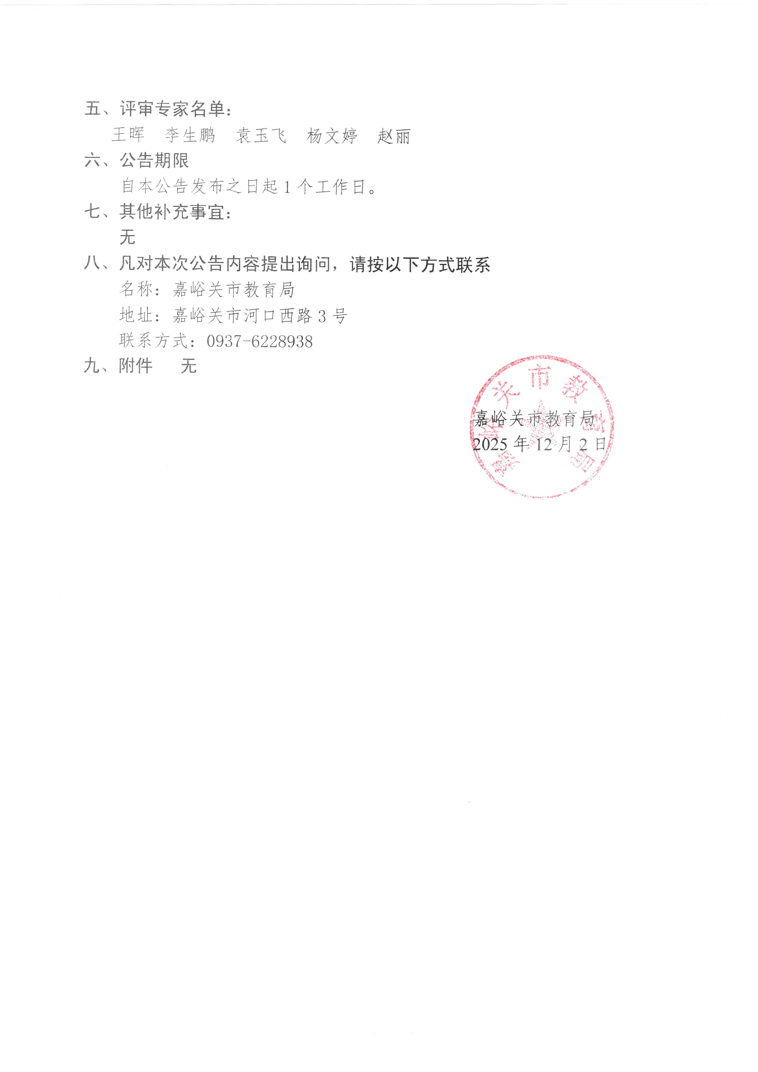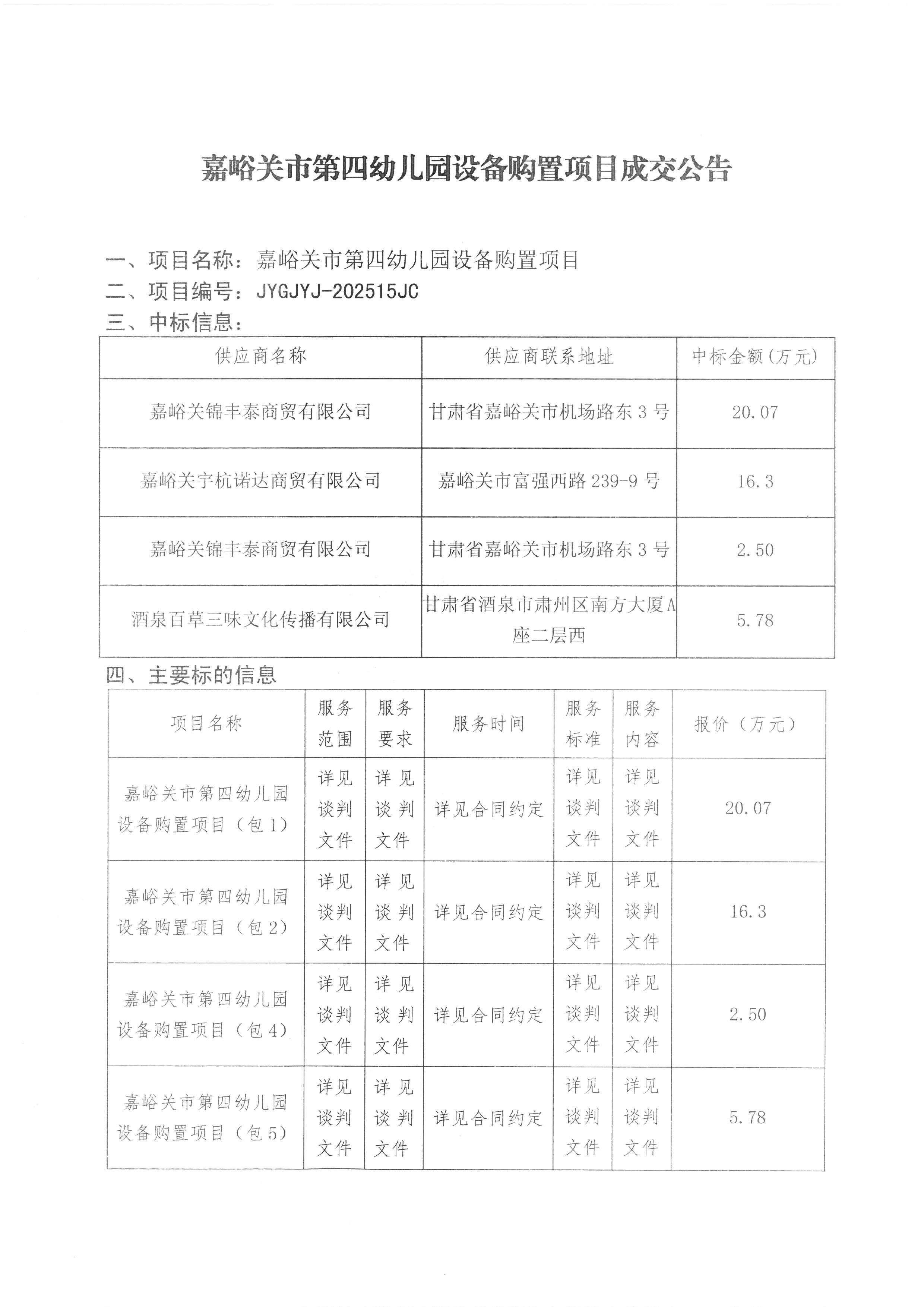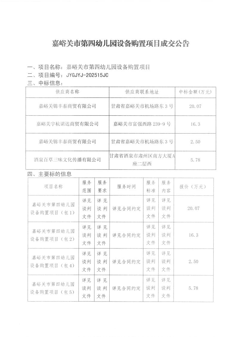 嘉峪关市第四幼儿园设备购置项目成交公告
