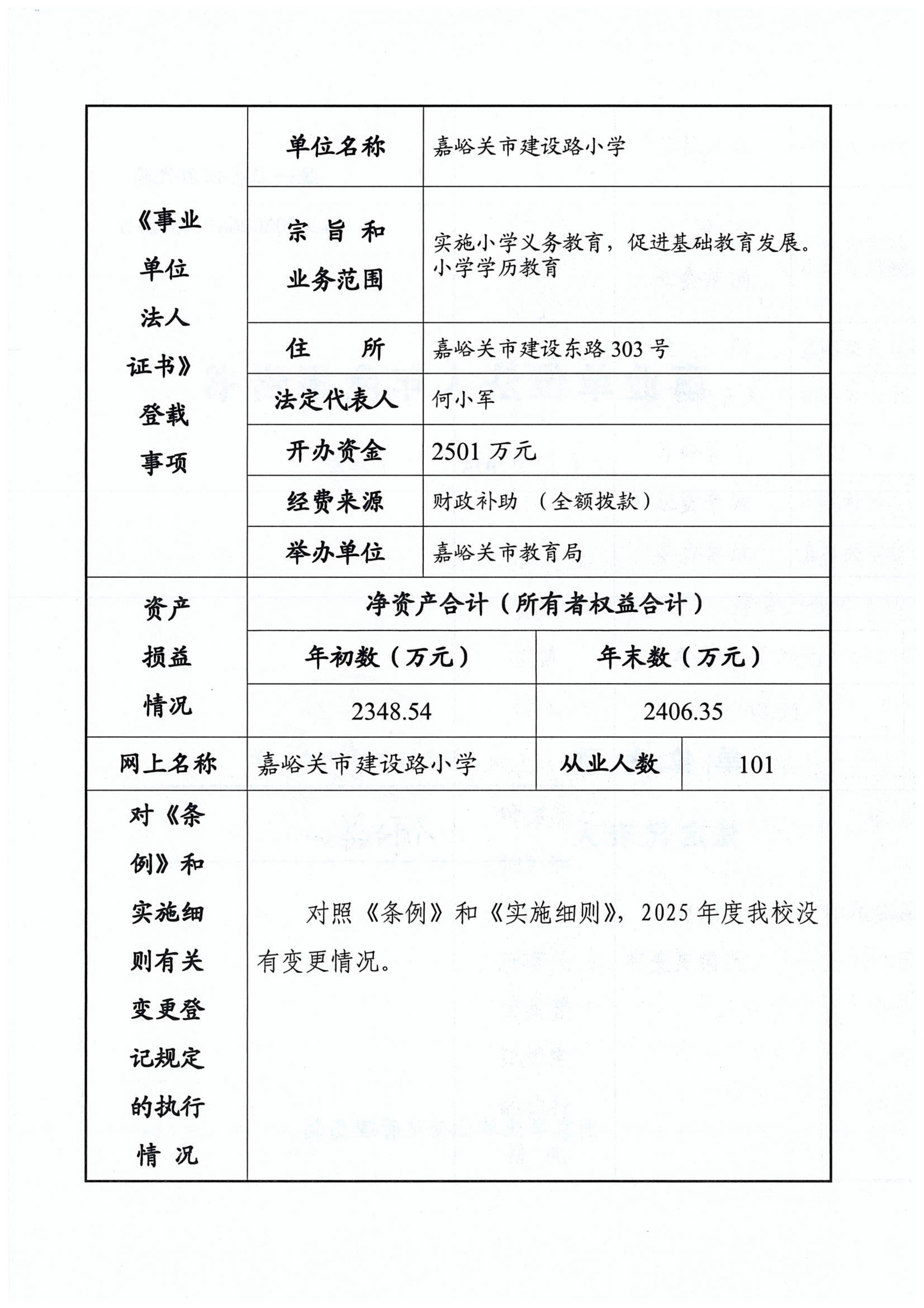 嘉峪关市建设路小学事业单位法人年度报告书(2025年度)