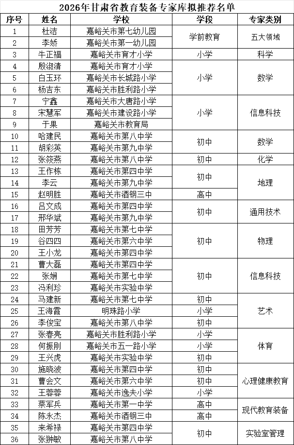 关于2026年甘肃省教育装备专家库拟推荐名单的公示