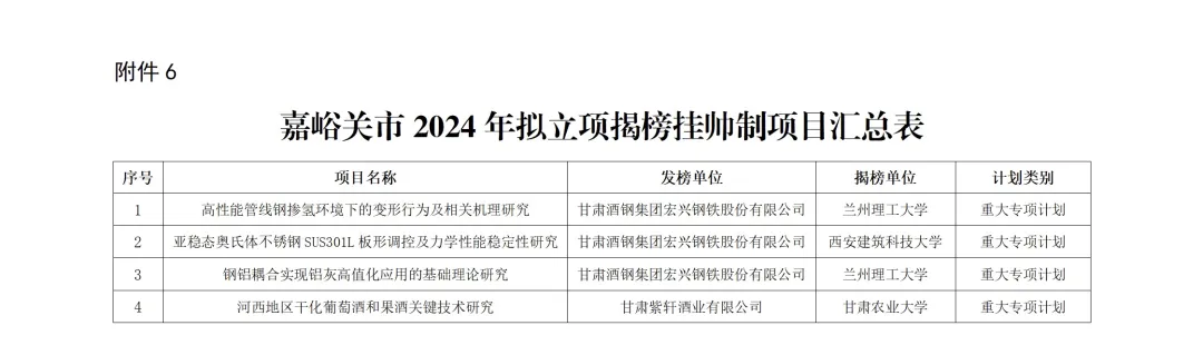 6.嘉峪关市2024年拟立项揭榜挂帅制项目汇总表