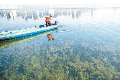 湖北武汉市全方位治理东湖,建设了100多公里东湖绿道,通过种植水下森林等方式,让东湖形成稳定的水生植被群落,确保东湖水清岸绿。人民日报记者 吴君摄