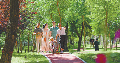 内蒙古呼和浩特市,市民在绿道散步。王 正摄(人民视觉)