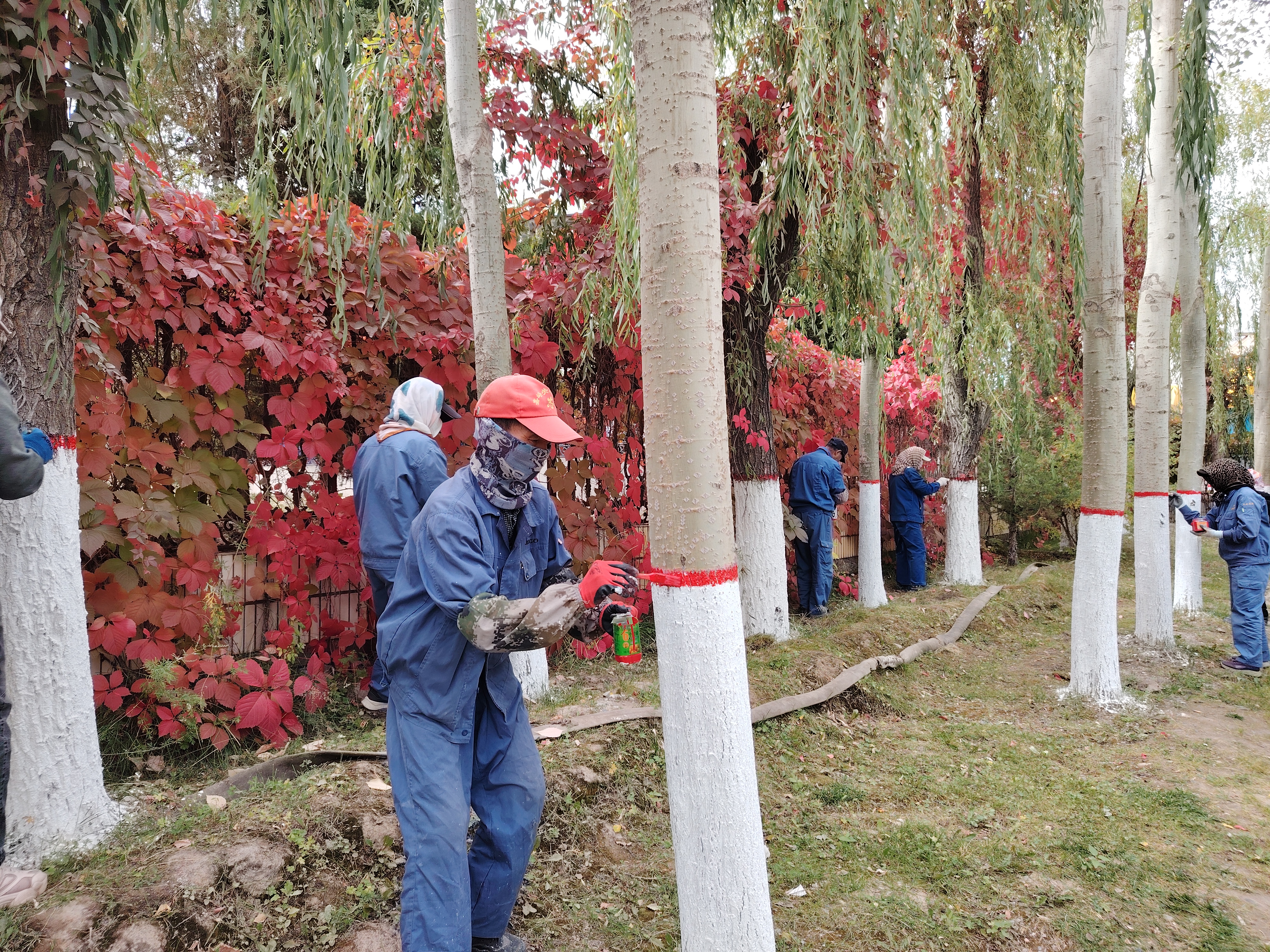 目前,全市树木涂白工作正紧张有序推进,预计于10月底全面完成。与此同时,园林绿化大队将同步推进秋冬季一系列养护工作:针对不同树种特性开展科学施肥,在根系集中区域开沟埋肥以补充养分;适时开展冬灌浇水,在“夜冻昼化”的关键期浇足封冻水;及时清理绿地杂草与枯枝落叶,减少病虫害滋生环境;做好排水系统检查与封井作业,防范冬季冻害;强化绿地安全巡查,杜绝火灾隐患。通过这一系列全方位举措,为树木安全越冬奠定坚实基础。