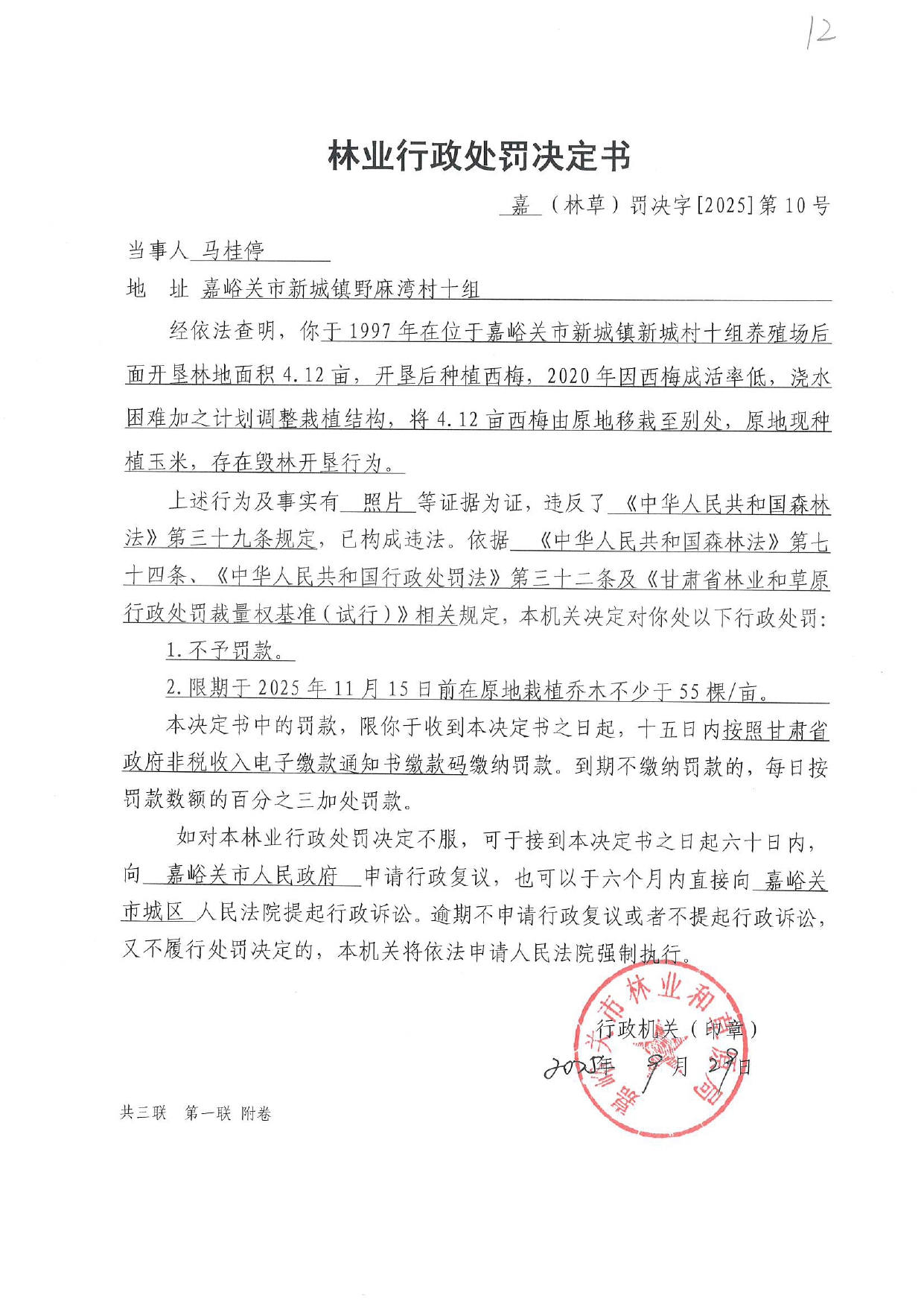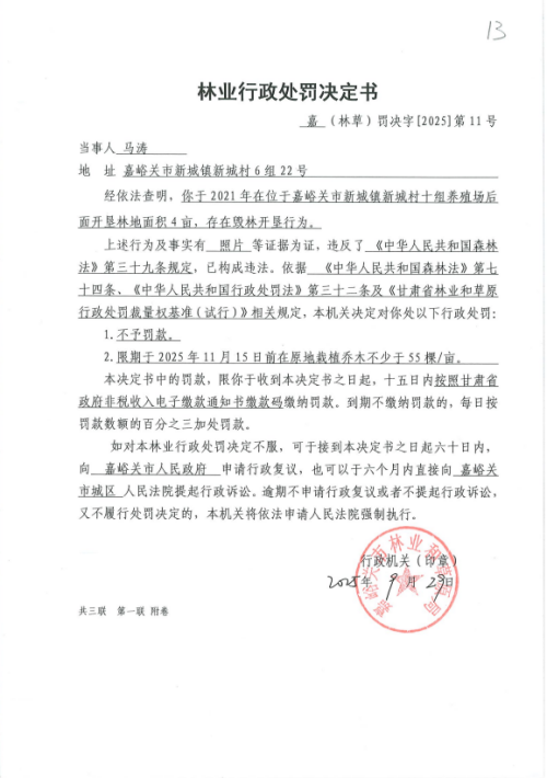 林业行政处罚决定书