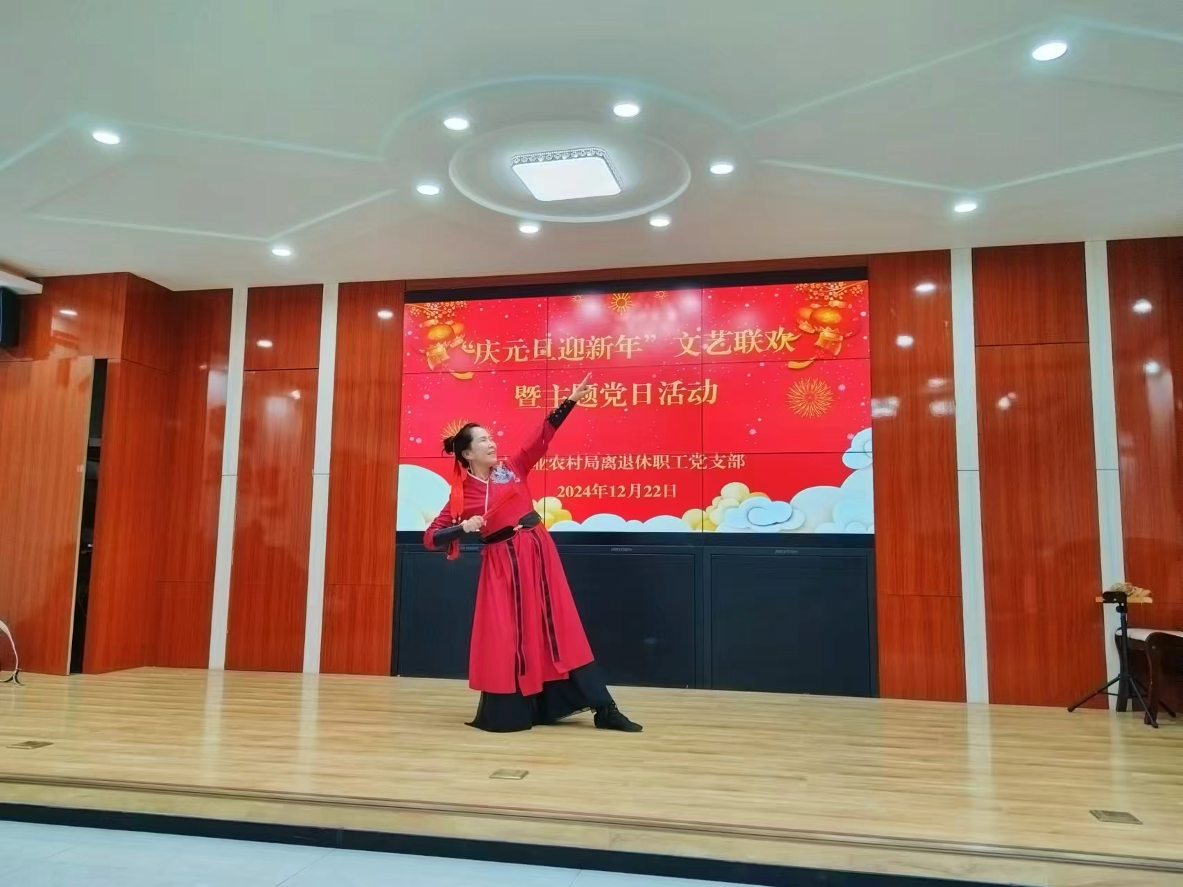 为进一步丰富离退休职工精神文化生活,营造喜庆祥和、文明和谐的节日氛围,12月22日,市农业农村局离退休职工党支部举办“喜迎元旦颂党恩,逐梦欢歌幸福年”为主题的文艺联欢会暨“主题党日”活动。离退休职工汇聚一堂,共赏舞蹈、歌曲、乐器合奏等精彩演出,共迎2025年元旦佳节,共话新年新愿景,共谋新年新作为。