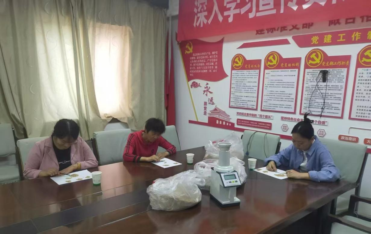(图为测产人员开展小麦样称重、千粒重、测定水分)