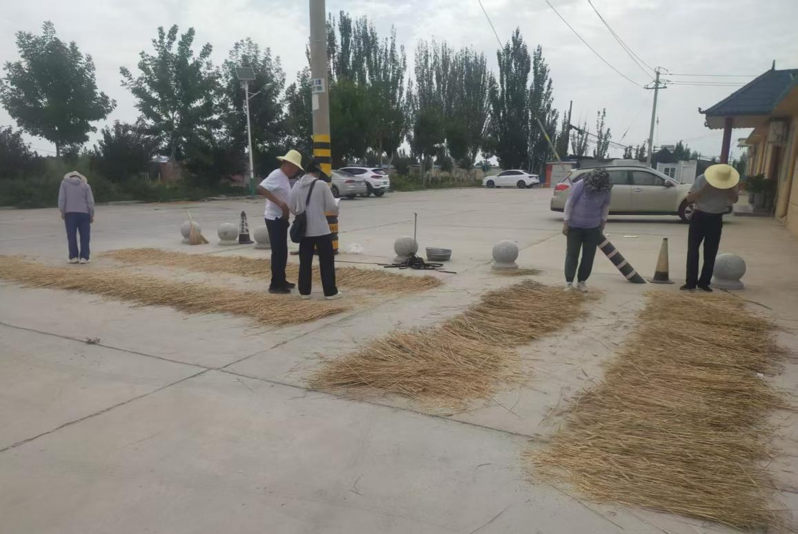 (图为测产人员开展小麦取样晾晒、脱粒、去杂)