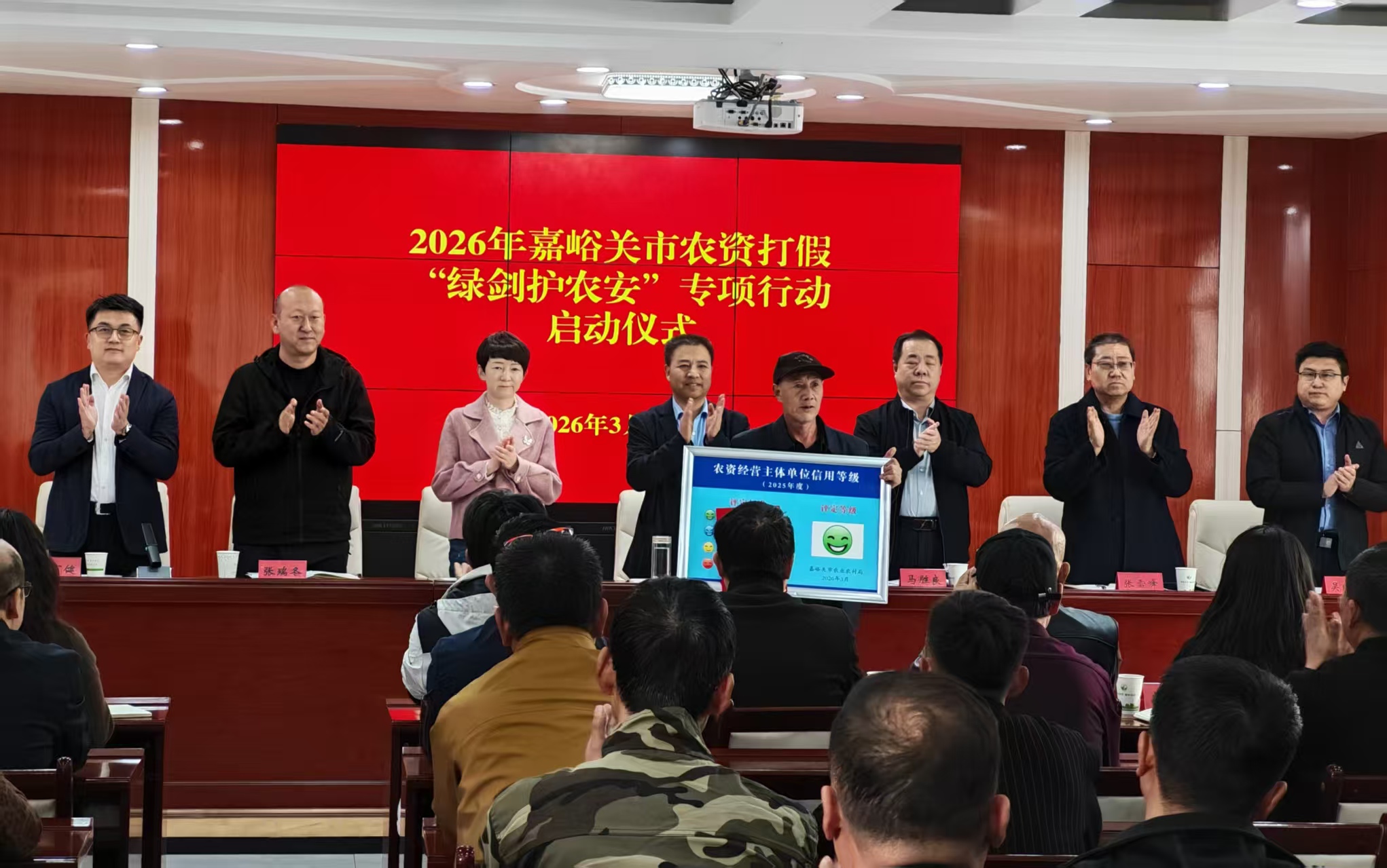 会上向获得A级诚信经营优秀单位的嘉峪关市全瑞诺农资经营部颁发了诚信经营优秀单位荣誉证书和诚信牌。解读了《2026年全市农资打假“绿剑护农安”专项行动实施方案》。甘肃同辉种业有限责任公司和嘉峪关市向日葵农业技术服务部代表做了表态发言。17家种子、农药、肥料等农资经营主体和38家种子企业签订了诚信经营承诺书。