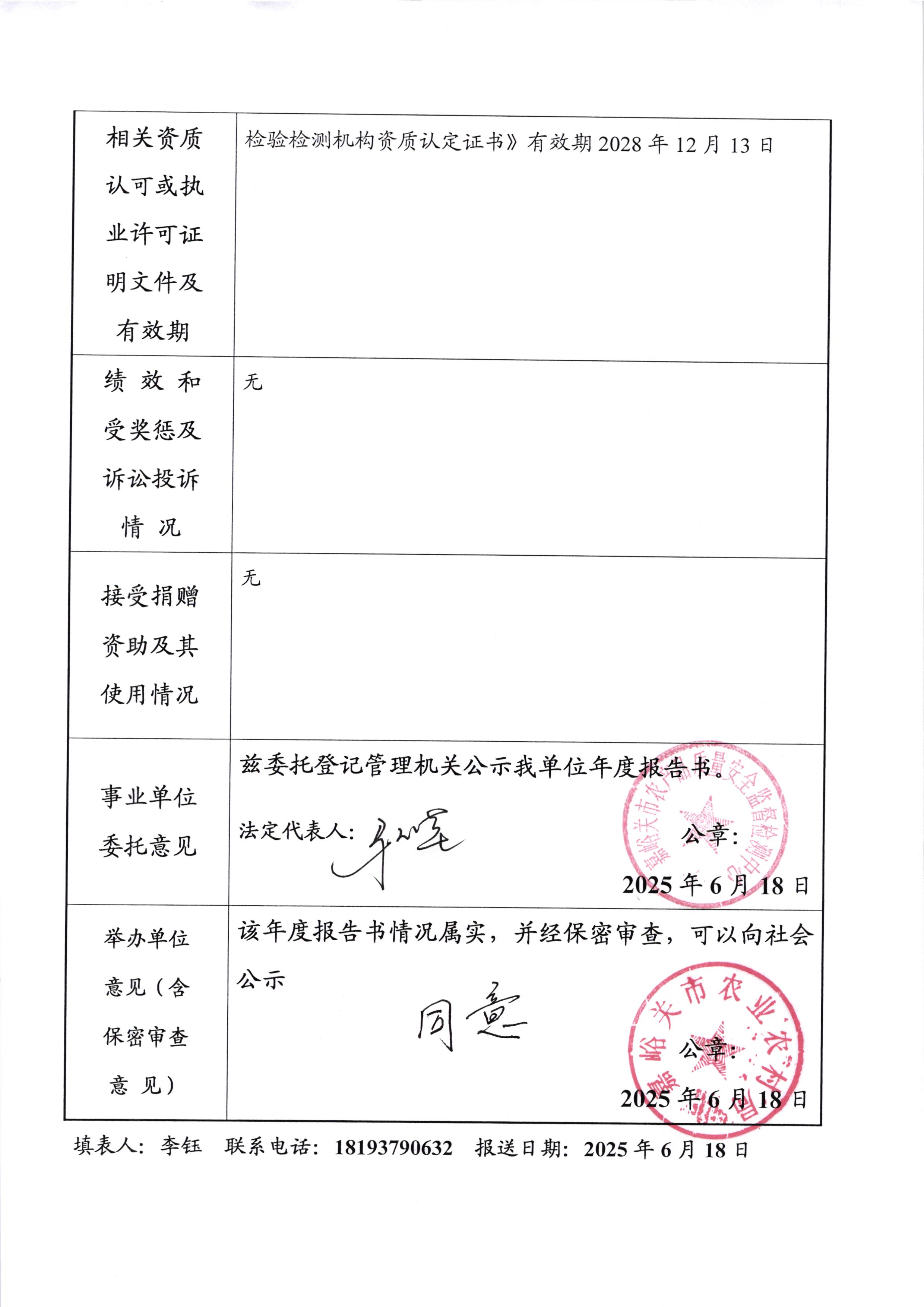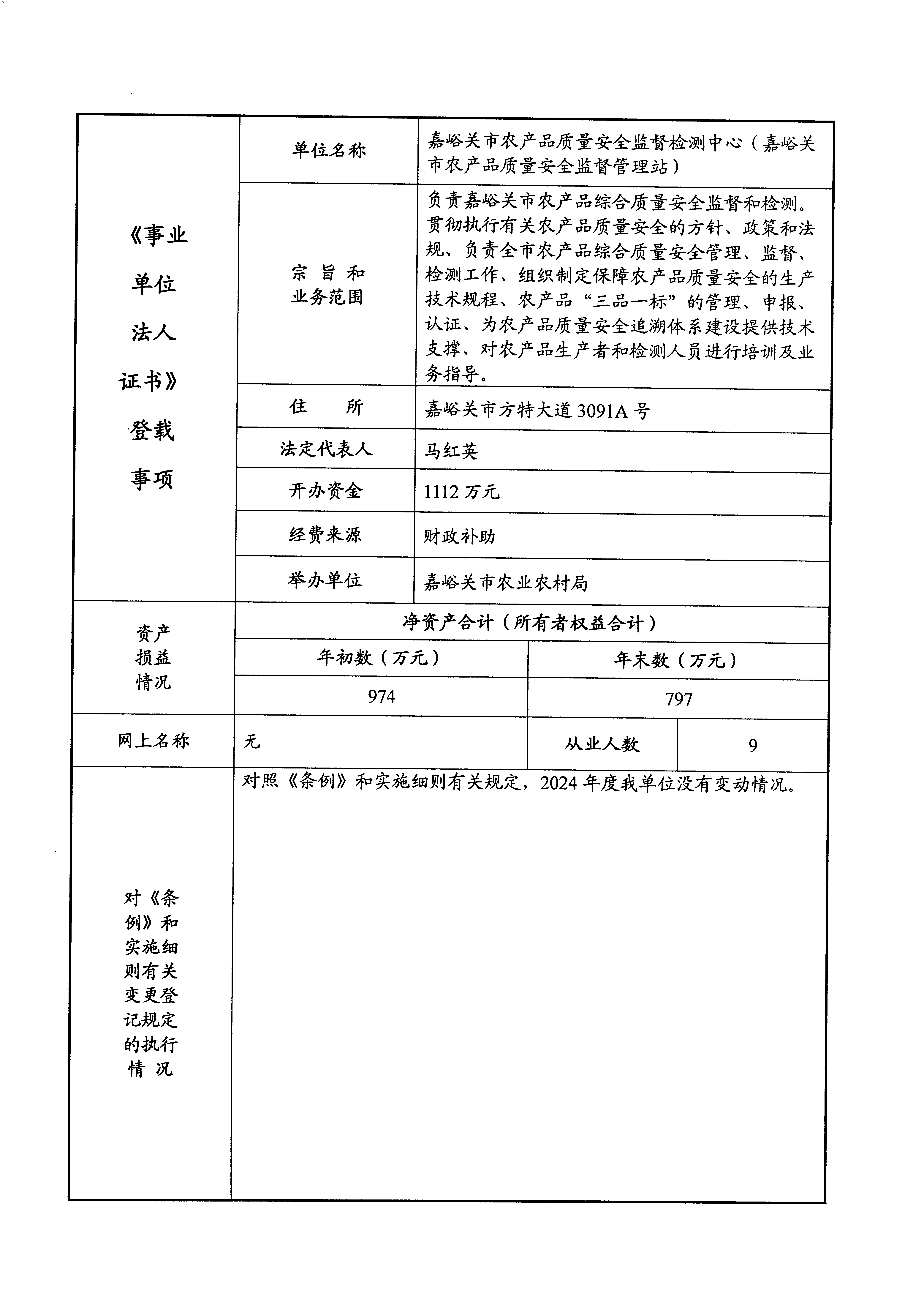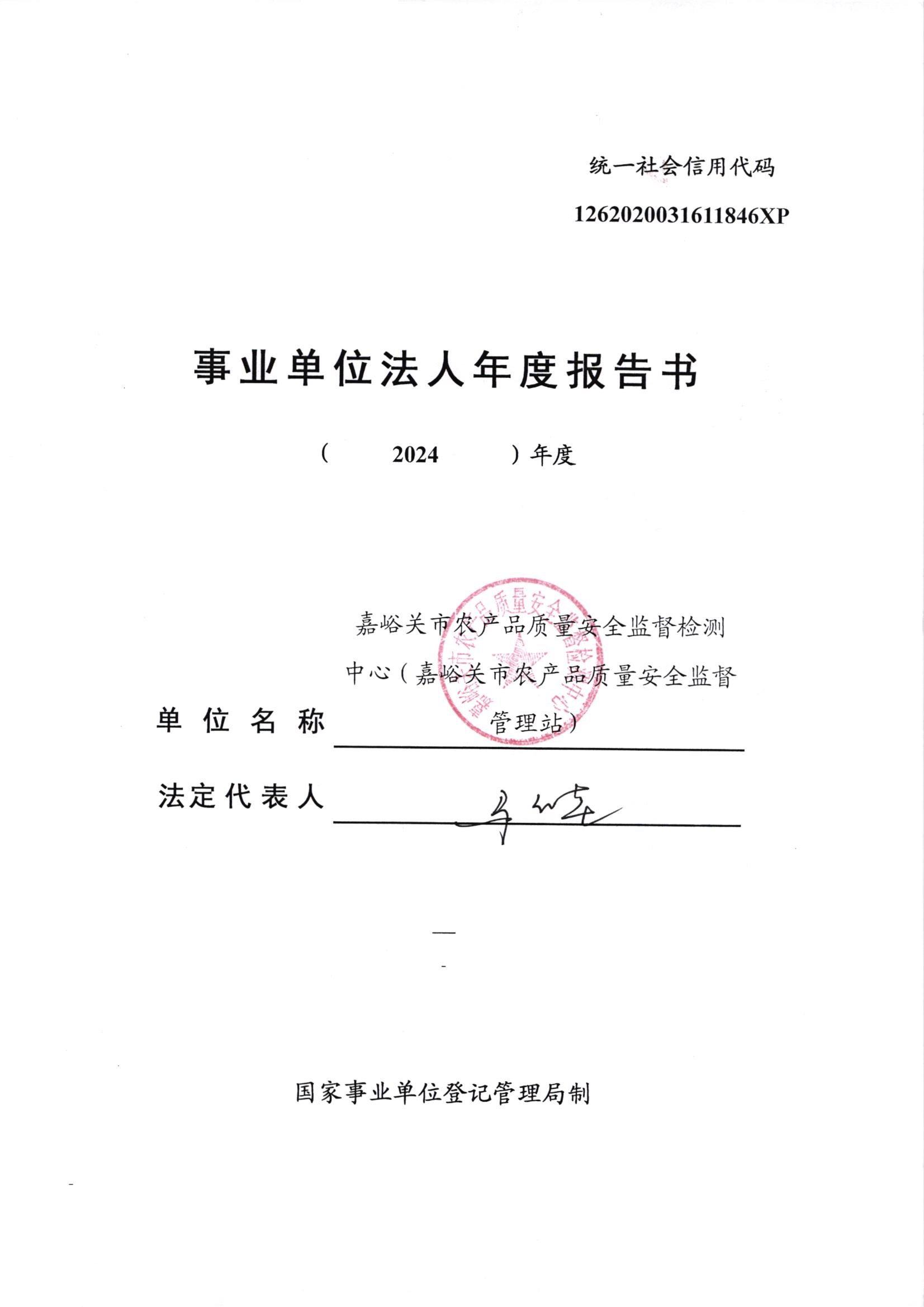 嘉峪关市农产品质量安全监督检测中心(嘉峪关市农产品质量安全监督管理站)2024年度事业单位法人年度报告书