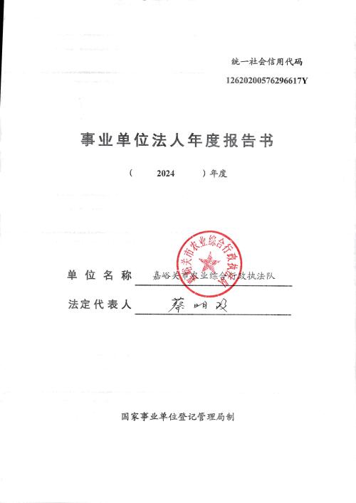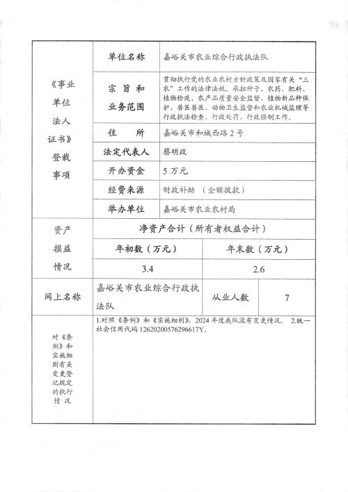 嘉峪关市农业综合行政执法队事业单位法人年度报告书(2024年度)