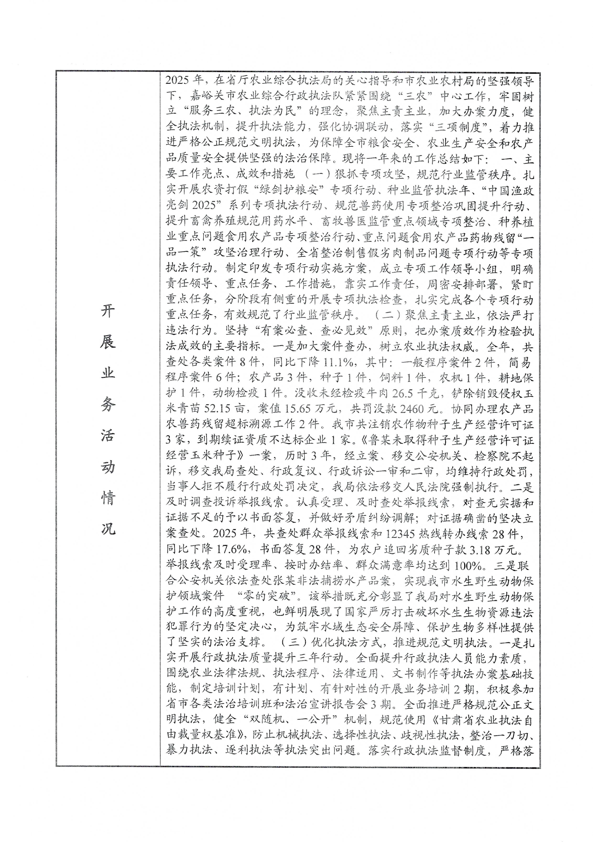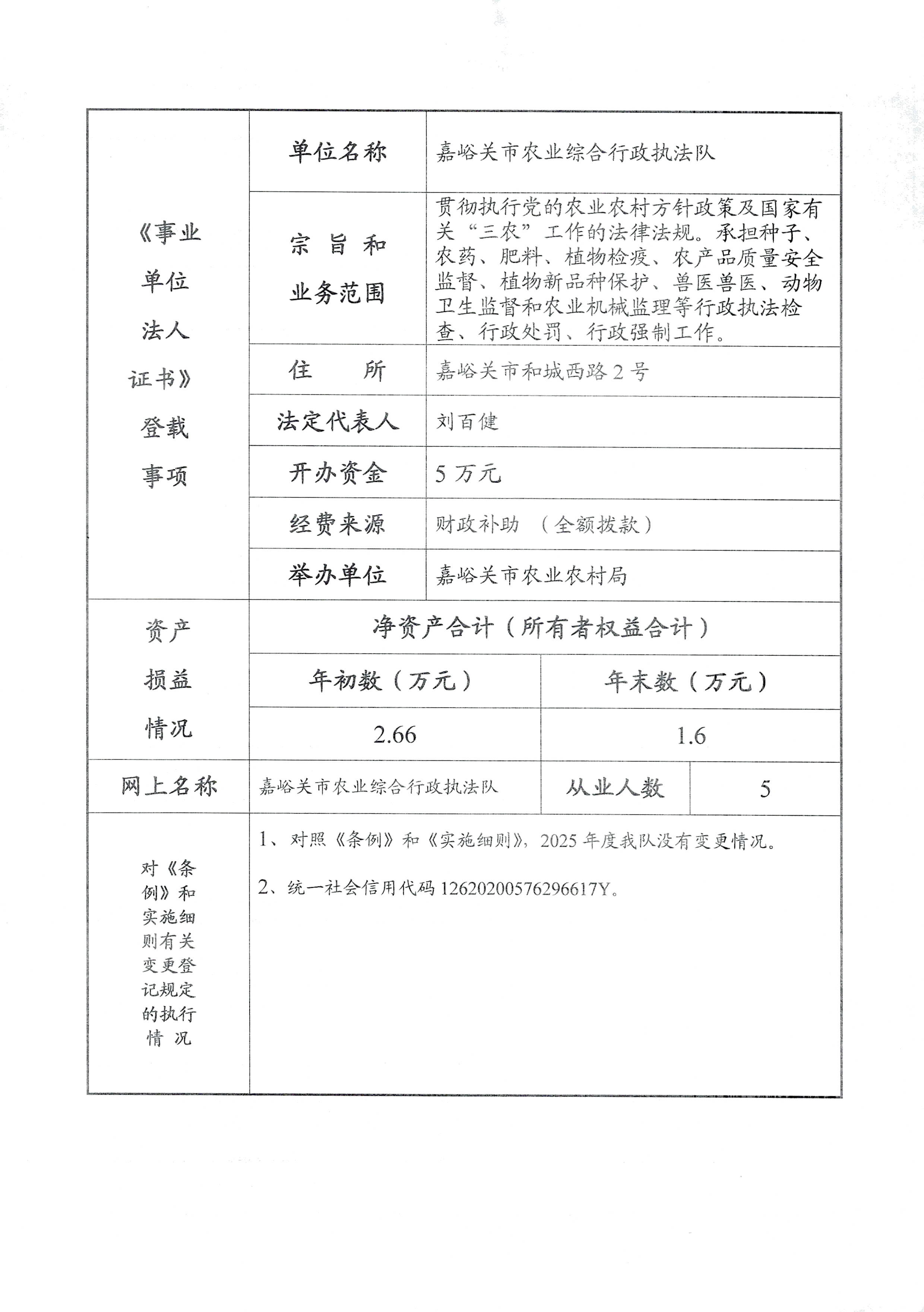嘉峪关市农业综合行政执法队2025年度事业单位法人年度报告书