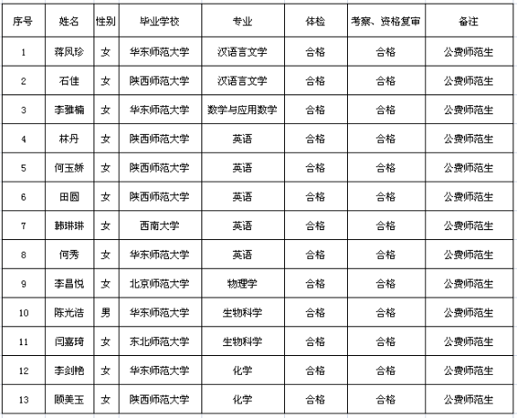 嘉峪关市公开招聘2023届公费师范生体检、考察、资格复审结果公布及拟聘用人员公示
