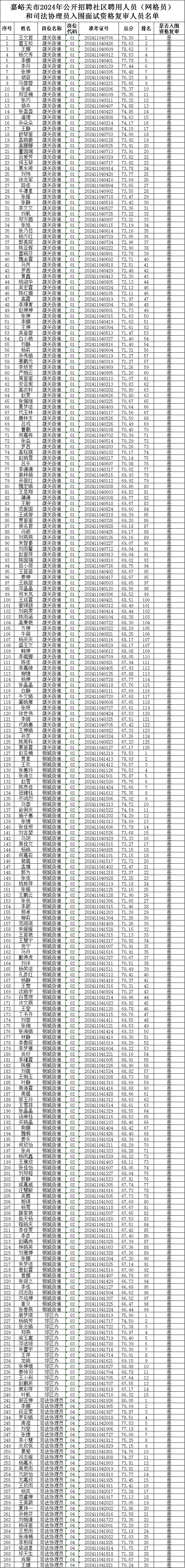嘉峪关市2024年公开招聘社区聘用人员(网格员)和司法协理员入围面试资格复审人员名单(见附件)。