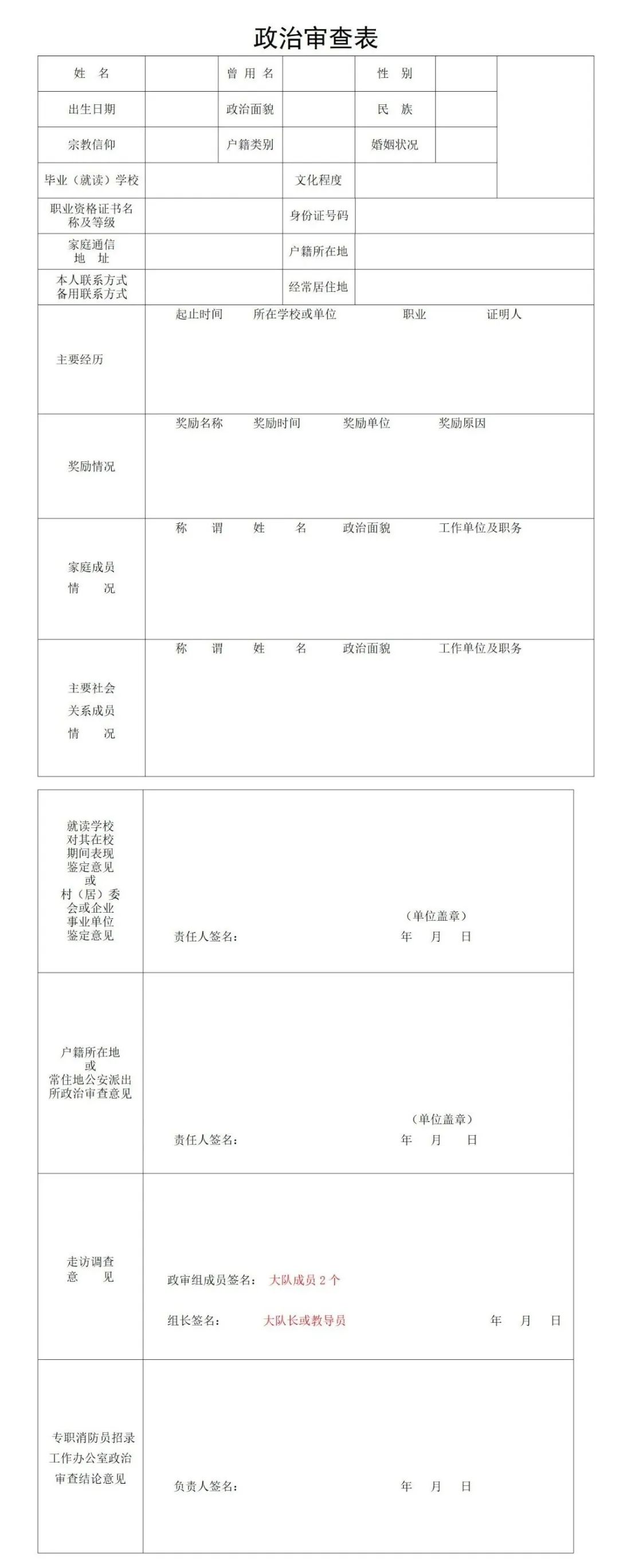 嘉峪关市消防救援支队政府专职消防员政治审查表