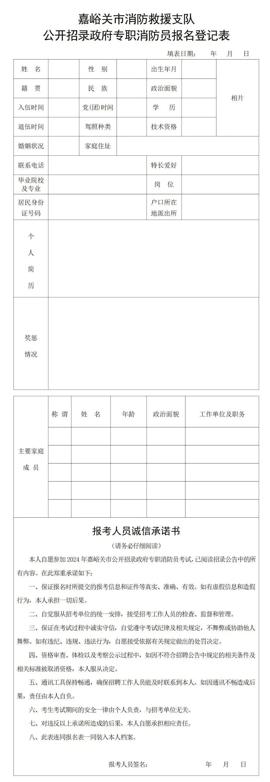 附件:1.嘉峪关市消防救援支队公开招录政府专职消防员报名登记表