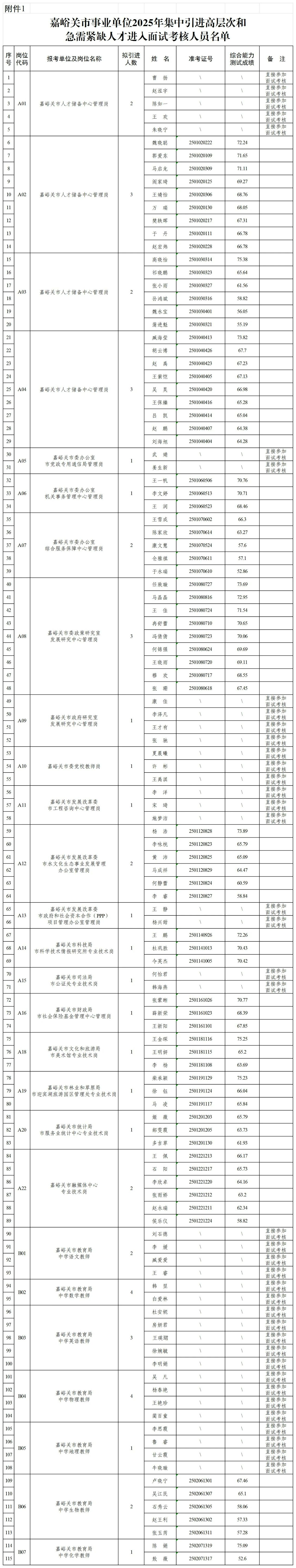 1.嘉峪关市事业单位2025年集中引进高层次和急需紧缺人才进入面试考核人员名单(请查看下图或识别下方二维码)