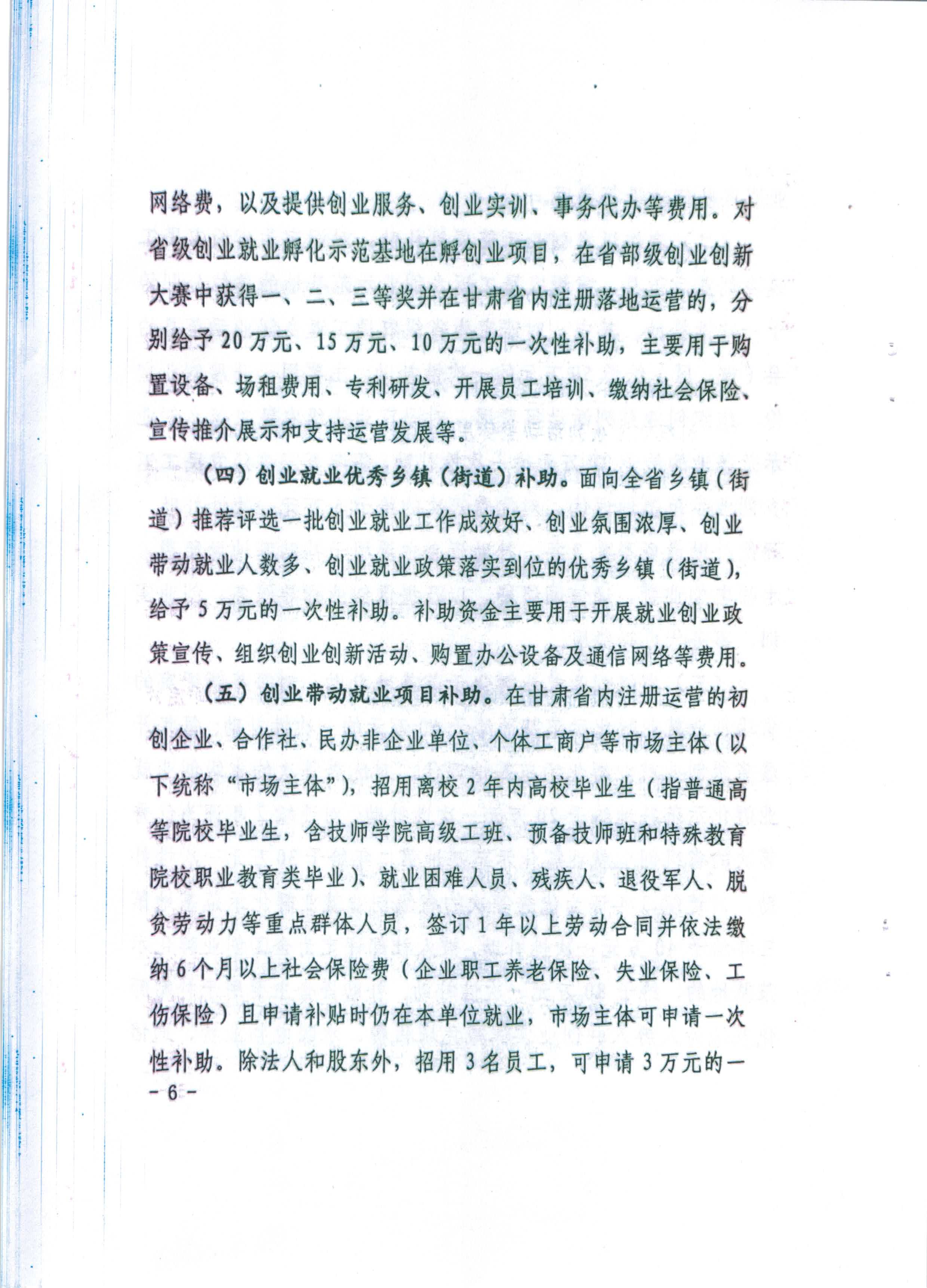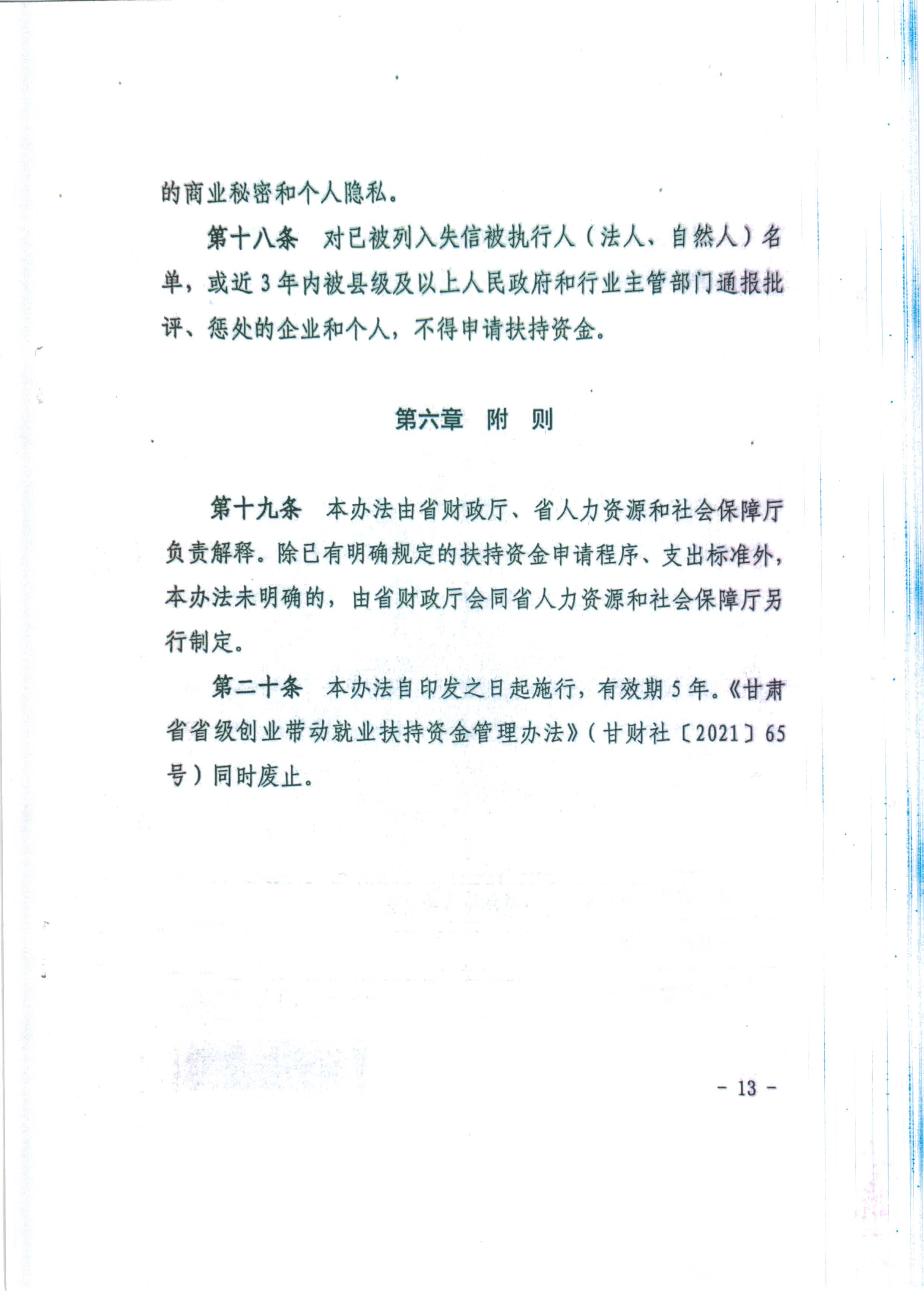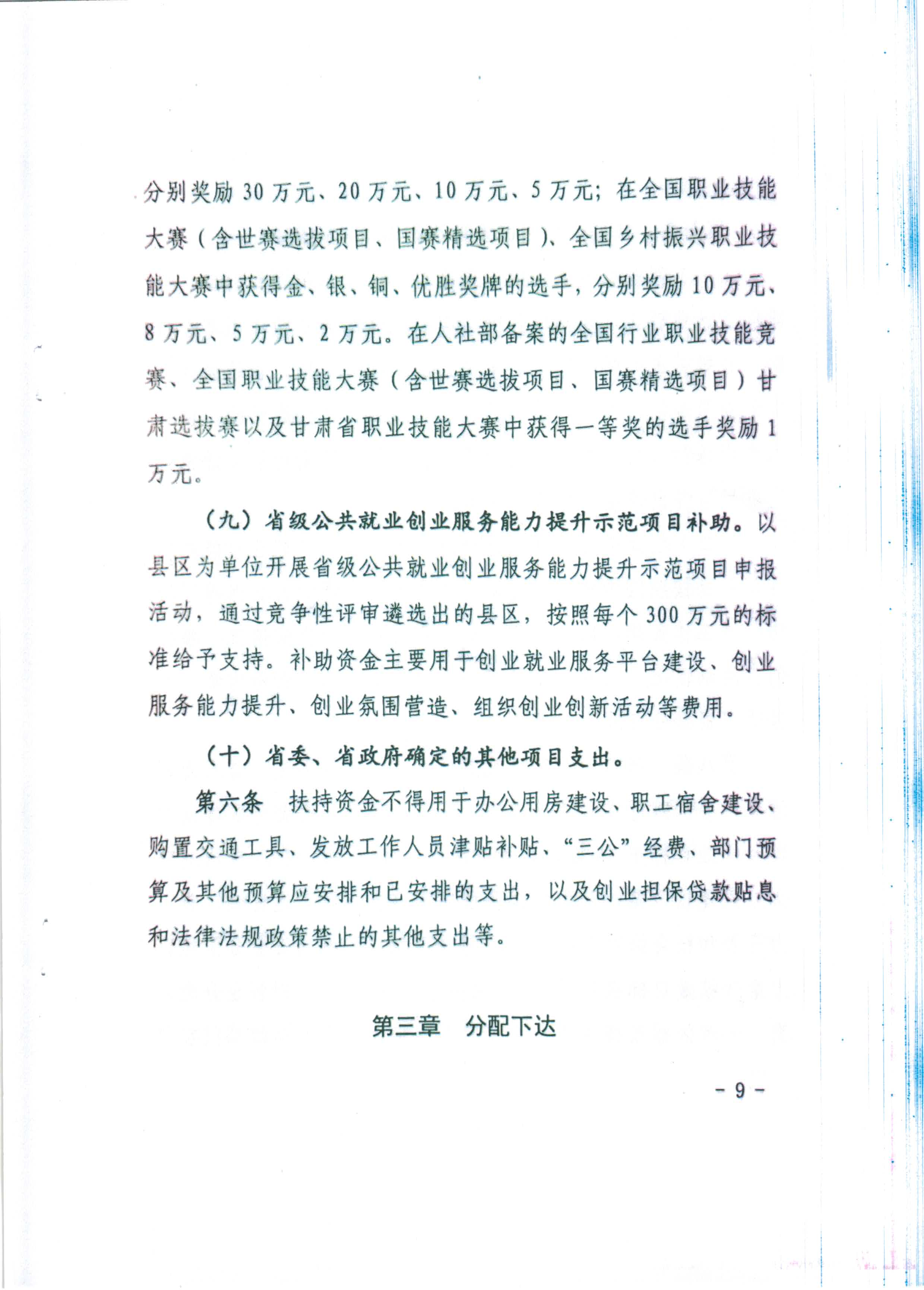 甘肃省省级创业带动就业扶持资金管理办法 -甘财社〔2023〕83号