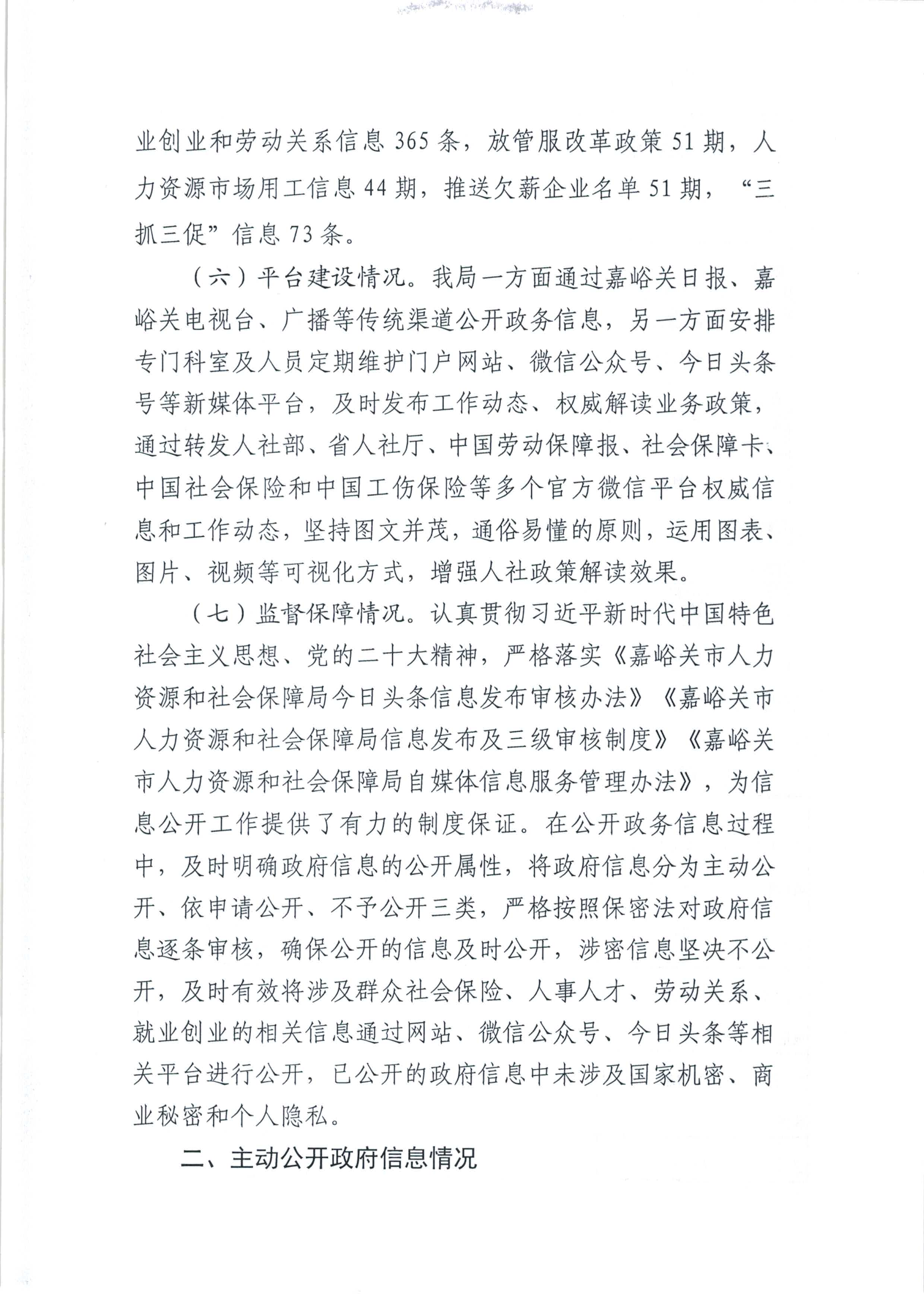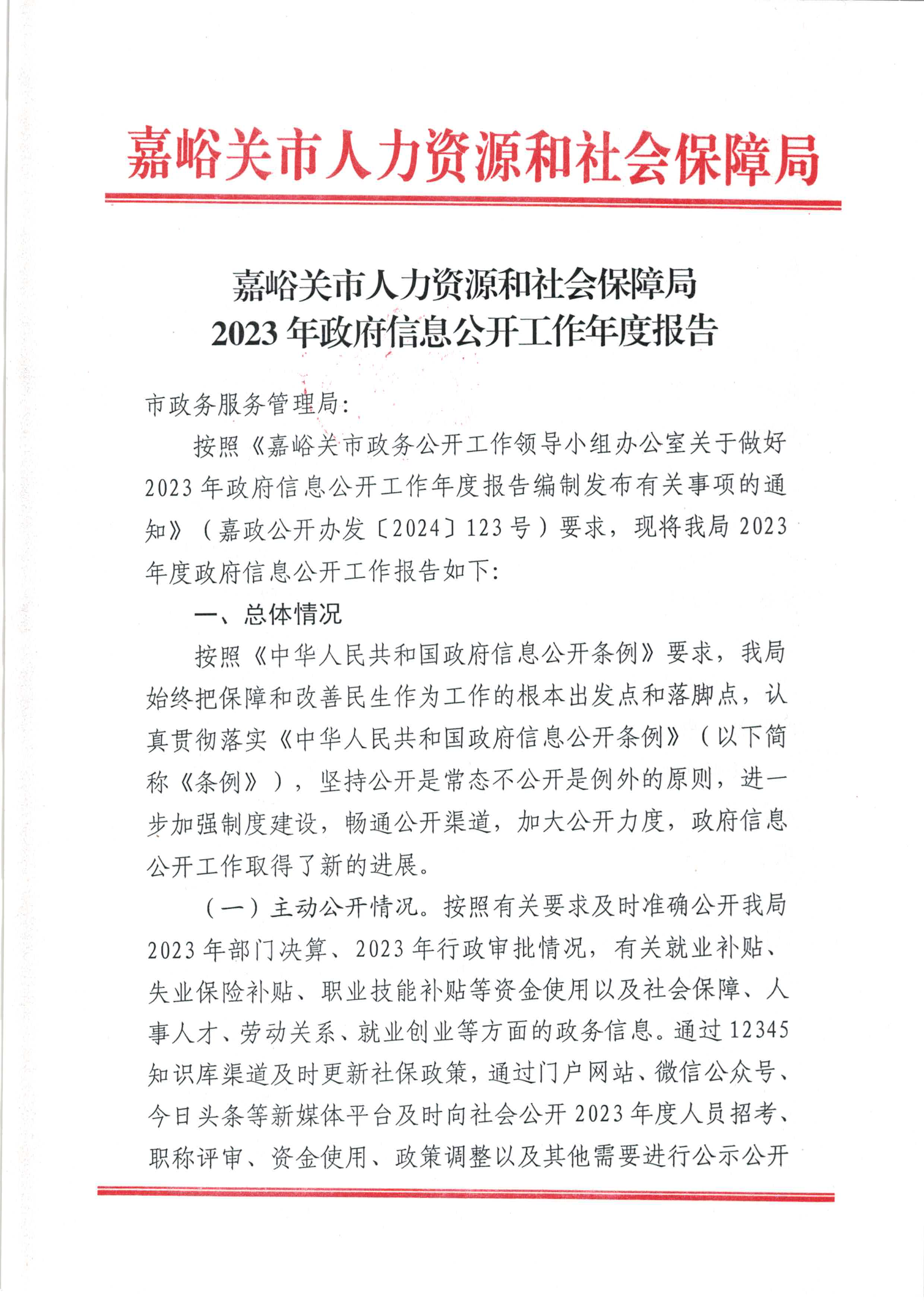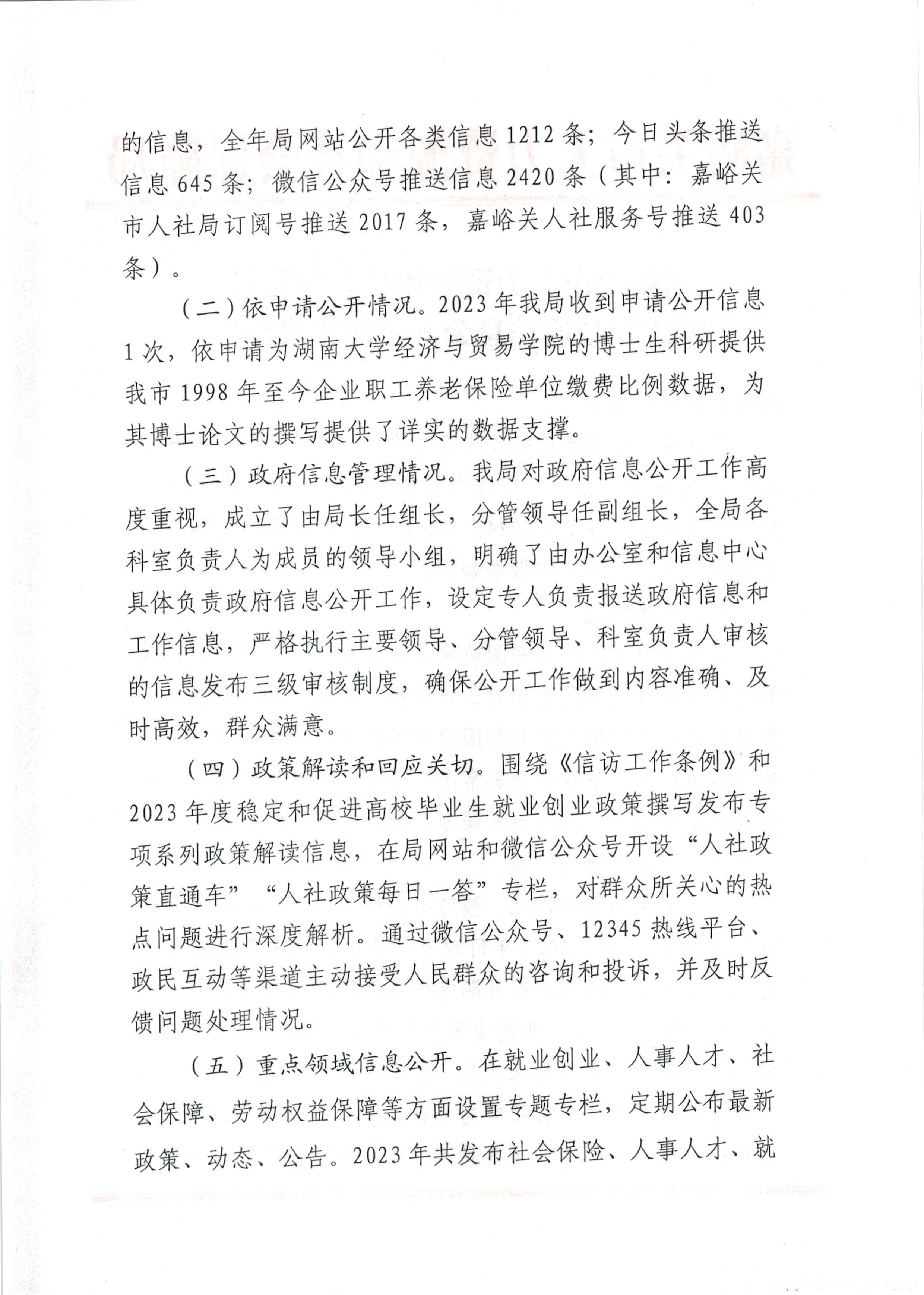 嘉峪关市人力资源和社会保障局2023年政府信息公开工作年度报告