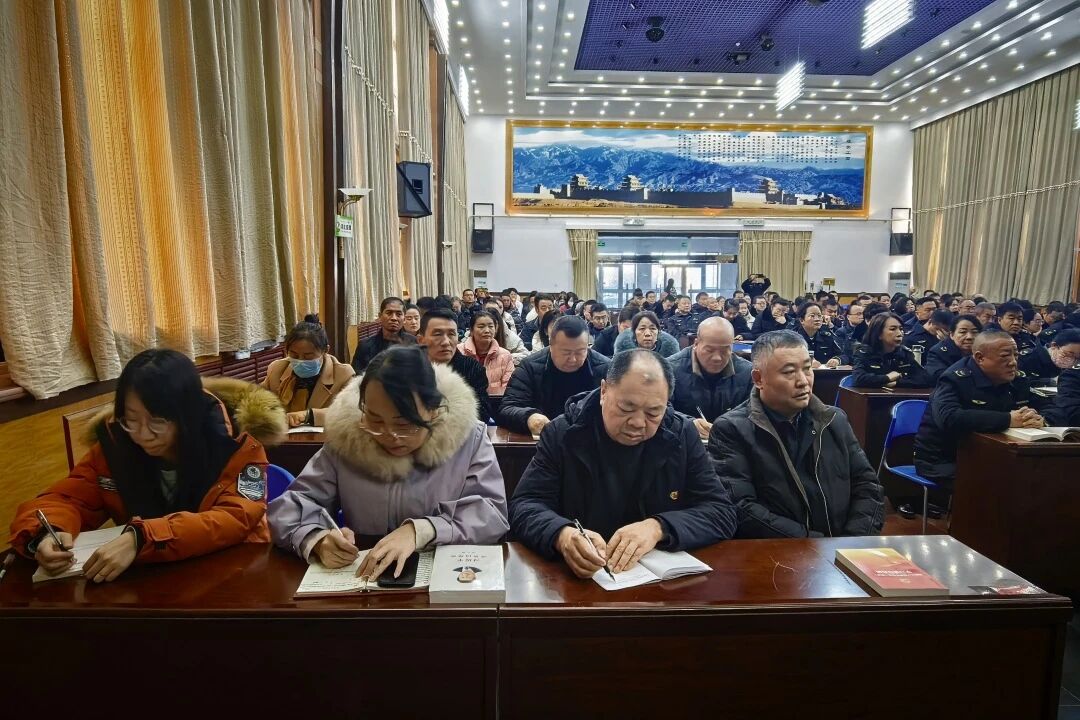 12月2日,嘉峪关市60余名非公有制经济组织代表与市市场监管局干部职工共同参加党的二十届四中全会精神集中宣讲报告会。宣讲以《在接续奋斗中谱写中国式现代化新篇章》为题,深入解读全会精神,凝聚发展共识,激发奋进力量。