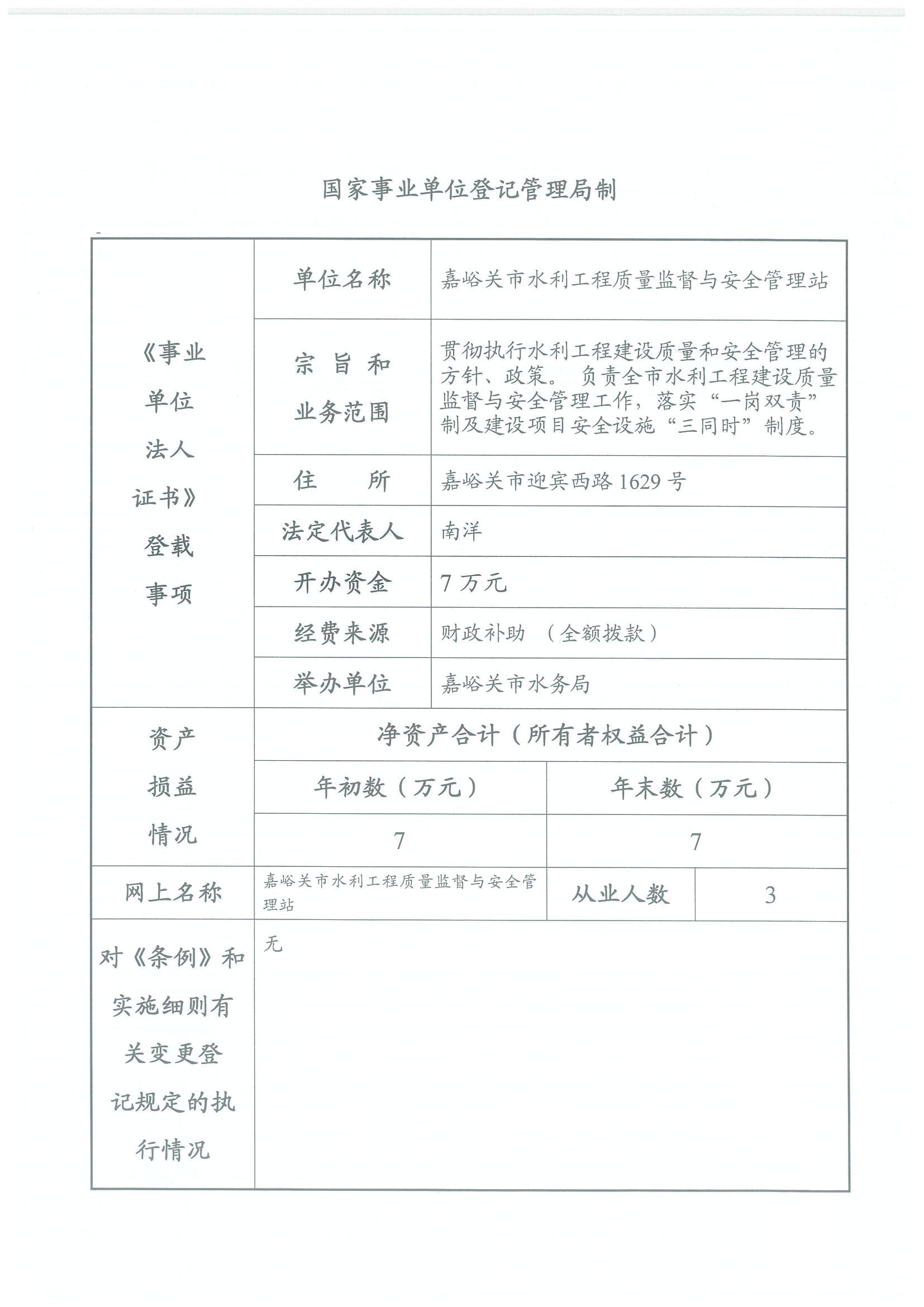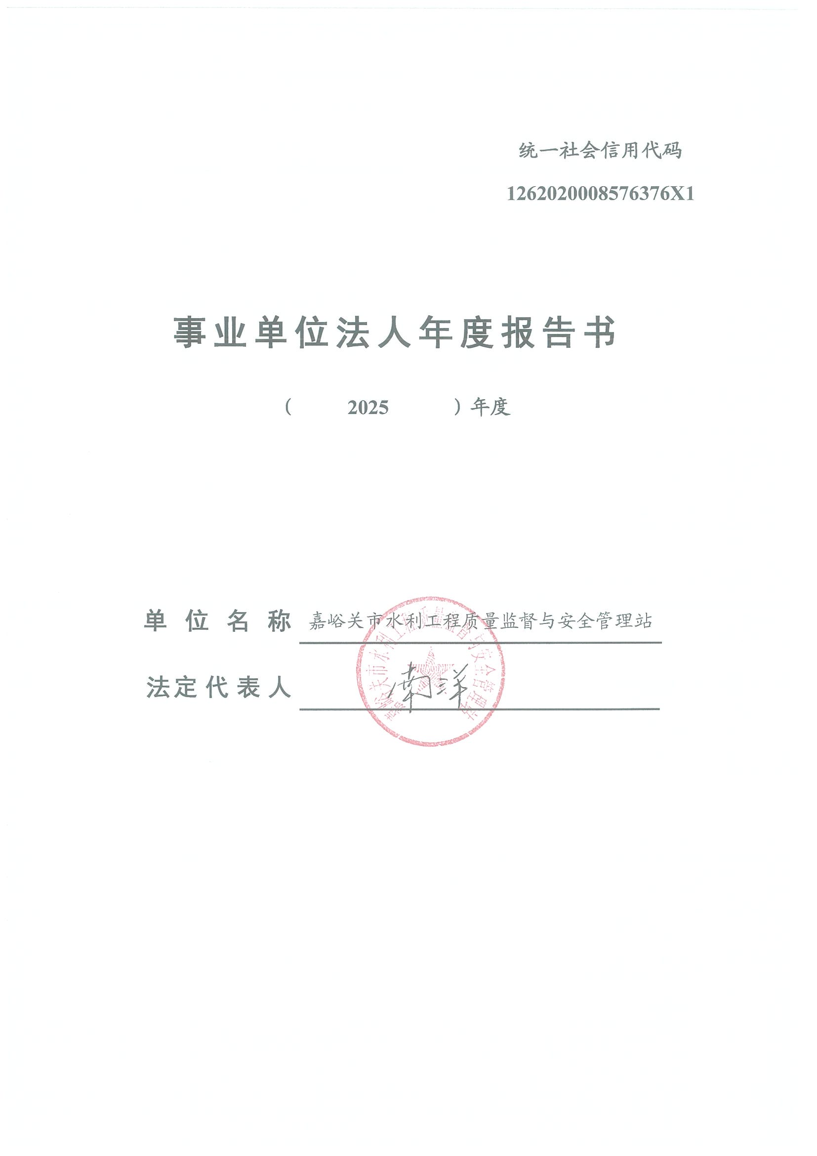 嘉峪关市水利工程质量监督与安全管理站2025年度事业单位法人年度报告书