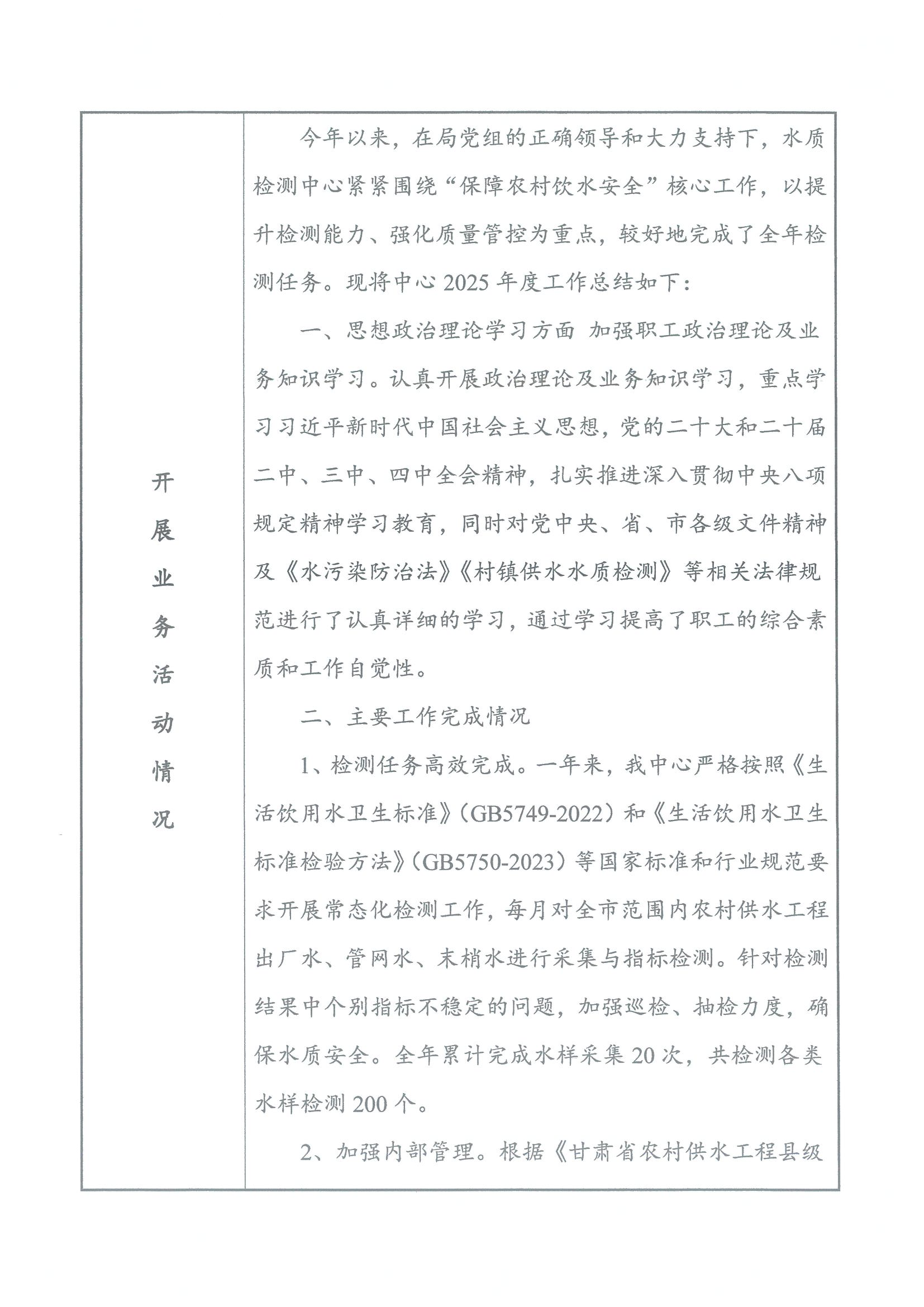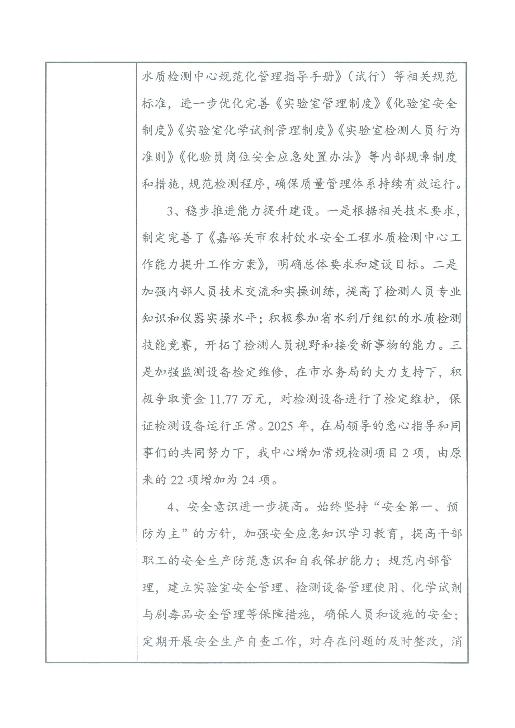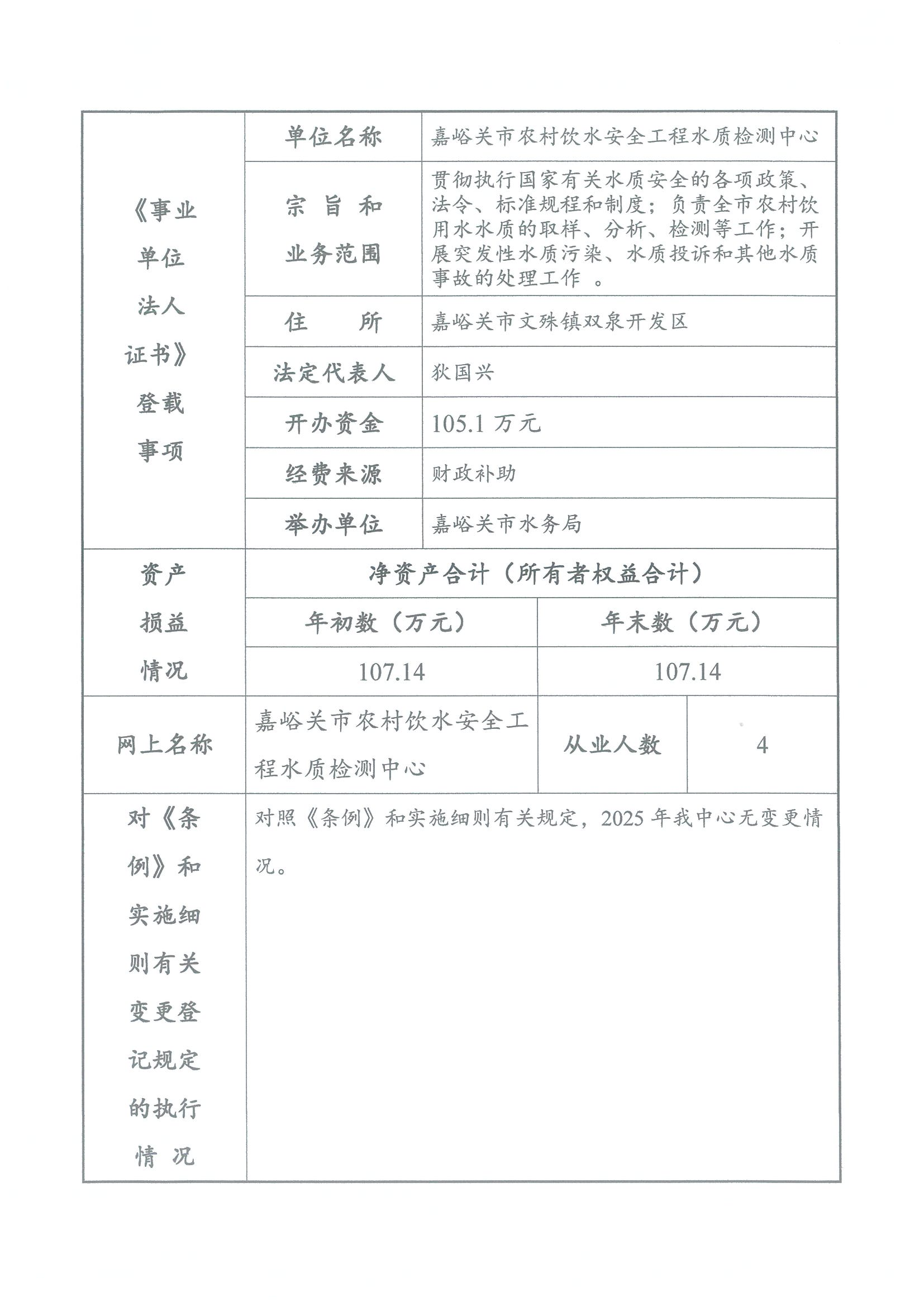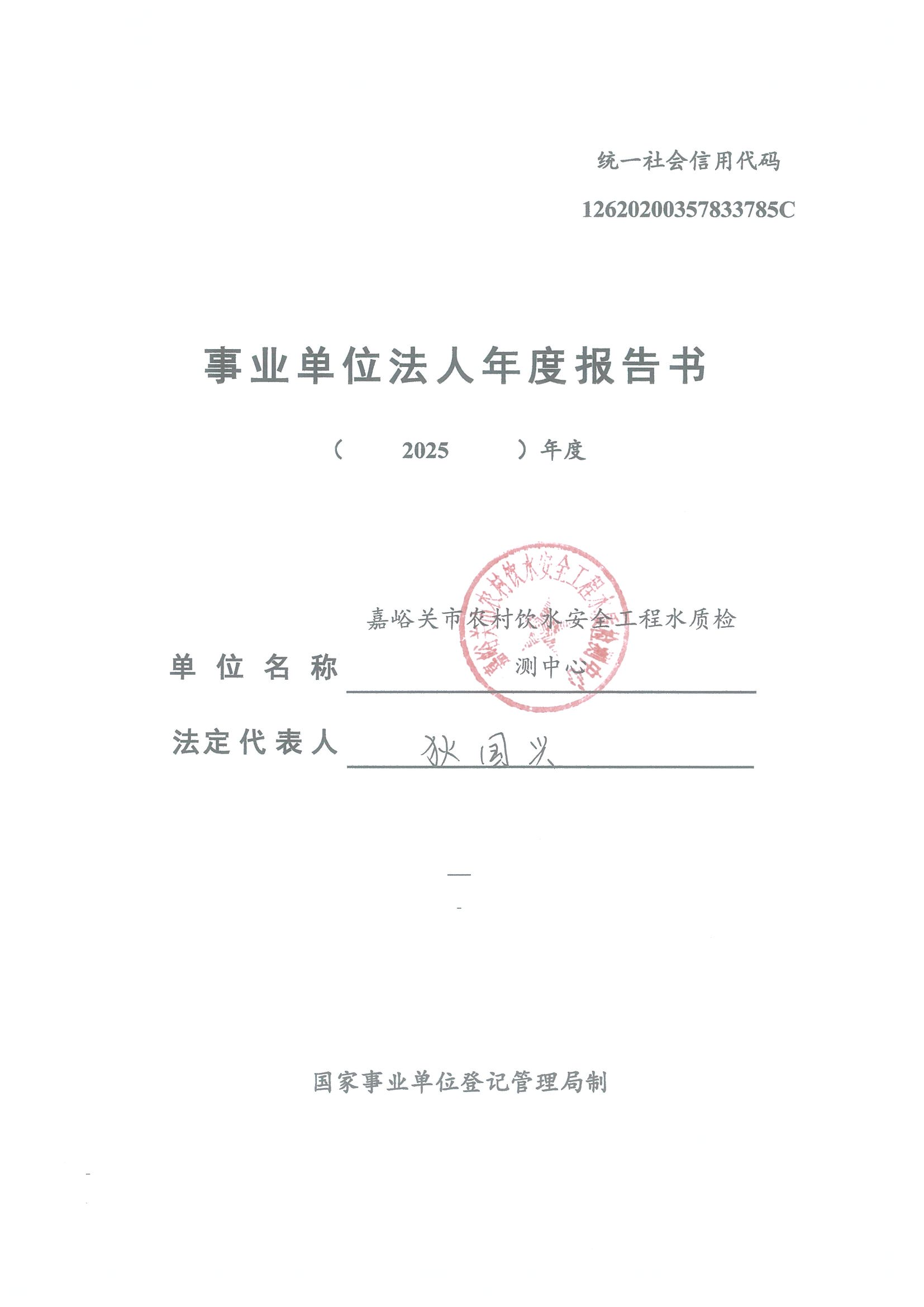 嘉峪关市农村饮水安全工程水质检测中心2025年度事业单位法人年度报告书