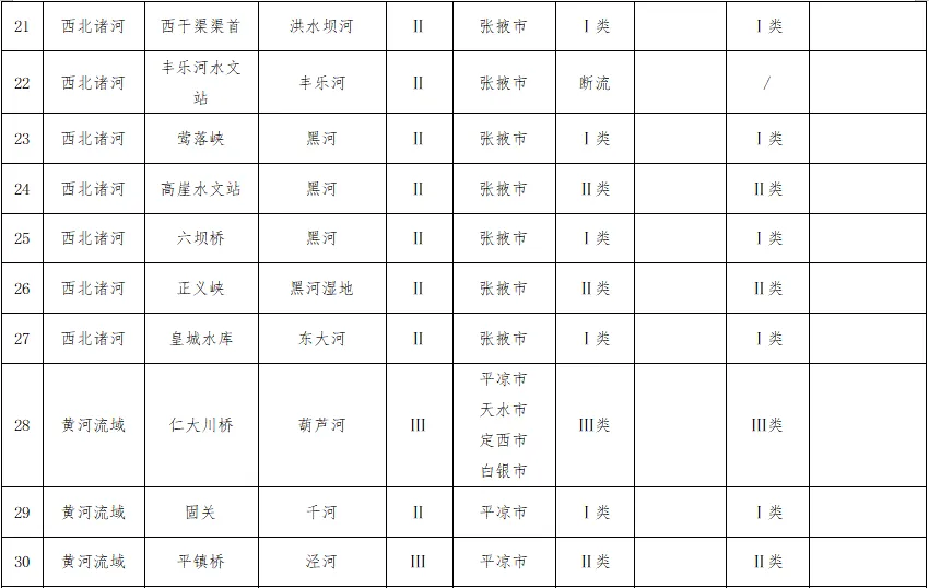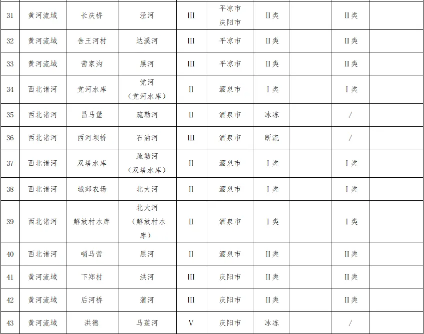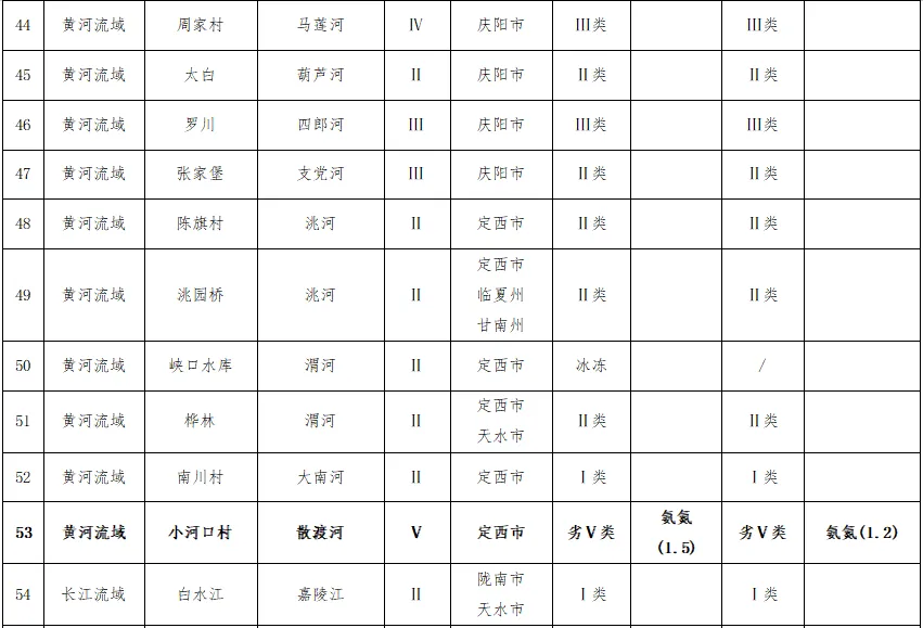 黄河流域41个国控断面水质优良比例为92.68%,劣Ⅴ类水体断面比例为4.88%,其中,散渡河小河口村断面,水质目标Ⅴ类,1-2月水质为劣Ⅴ类,责任县区为定西市通渭县;祖厉河井沟断面,水质目标Ⅳ类,1-2月水质为劣Ⅴ类,责任县区为白银市会宁县。