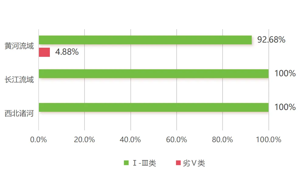 西北诸河流域19个国控断面水质优良比例为100%,无劣Ⅴ类水体。
