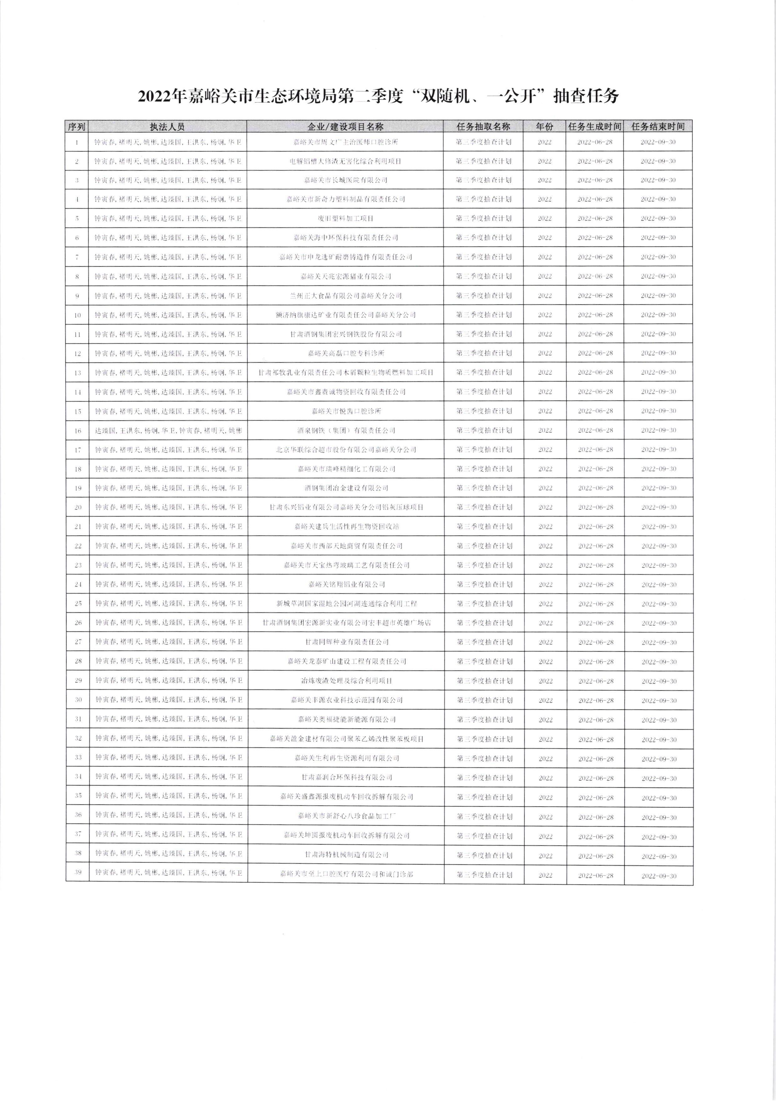 2022年嘉峪关市生态环境局第三季度“双随机、一公开”任务抽取公示