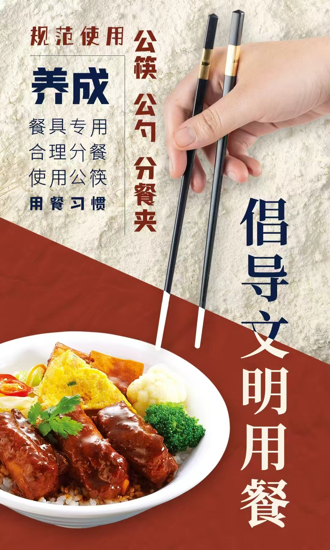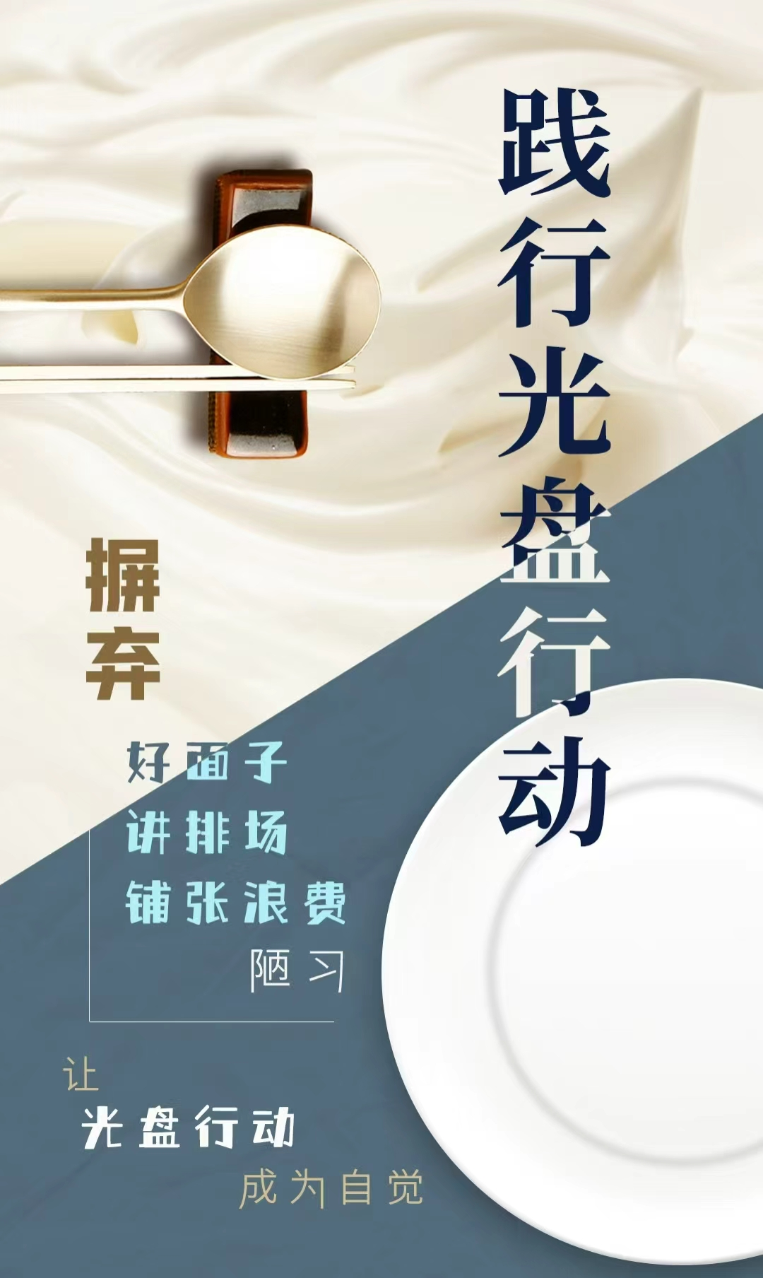 勤俭节约是中华民族的传统美德。请大家从自身做起,摈弃陋习、理性消费,文明用餐、光盘行动,自觉做文明新风的宣传者、实践者和推动者。