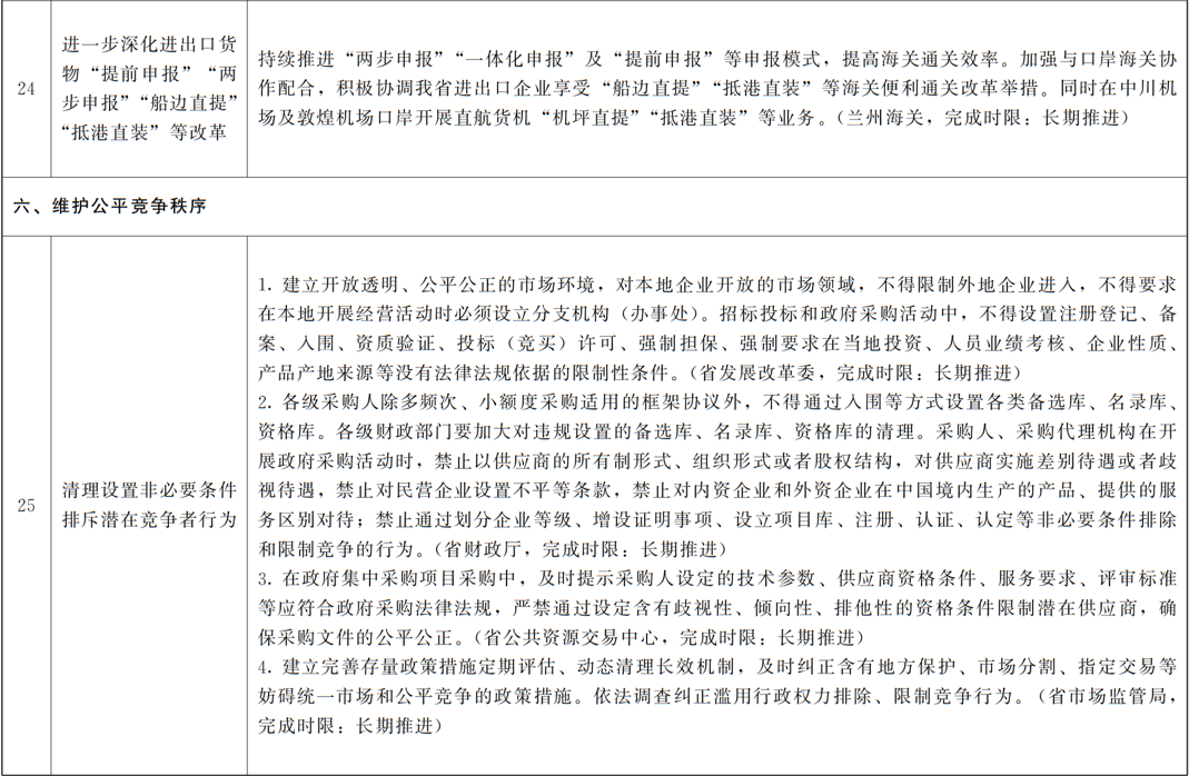甘肃省复制推广营商环境创新试点改革举措细化清单