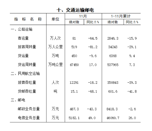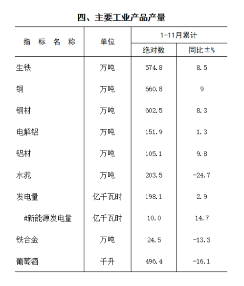 2022年1-11月统计月报