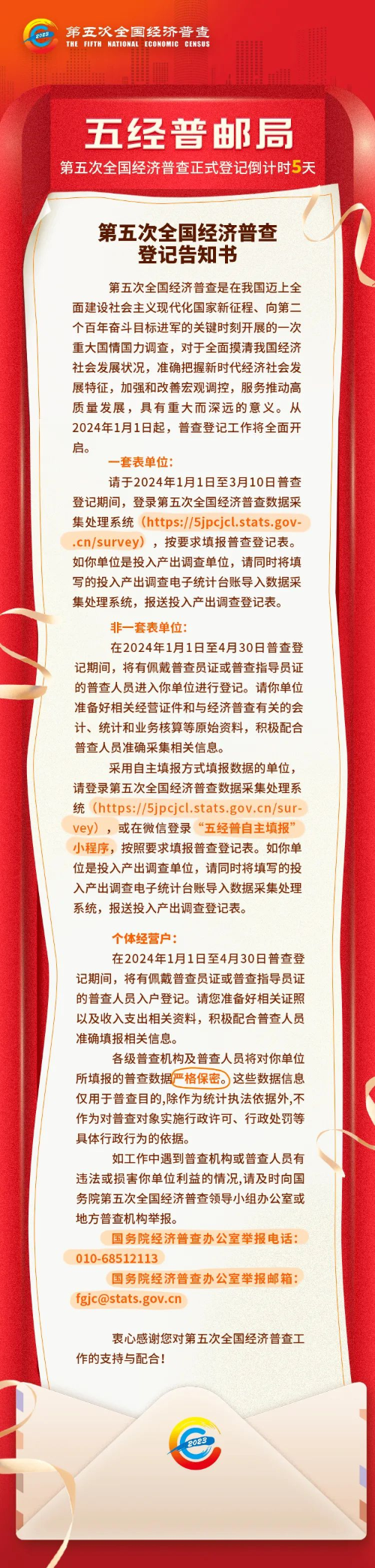经济大盘点即将开始!您有一封普查登记告知书待查收〜
