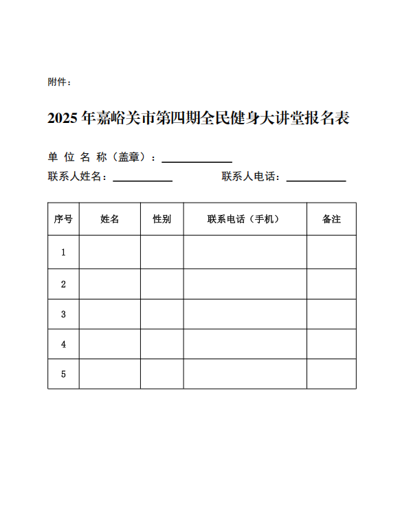 附 件:2025年嘉峪关市第四期全民健身大讲堂报名表