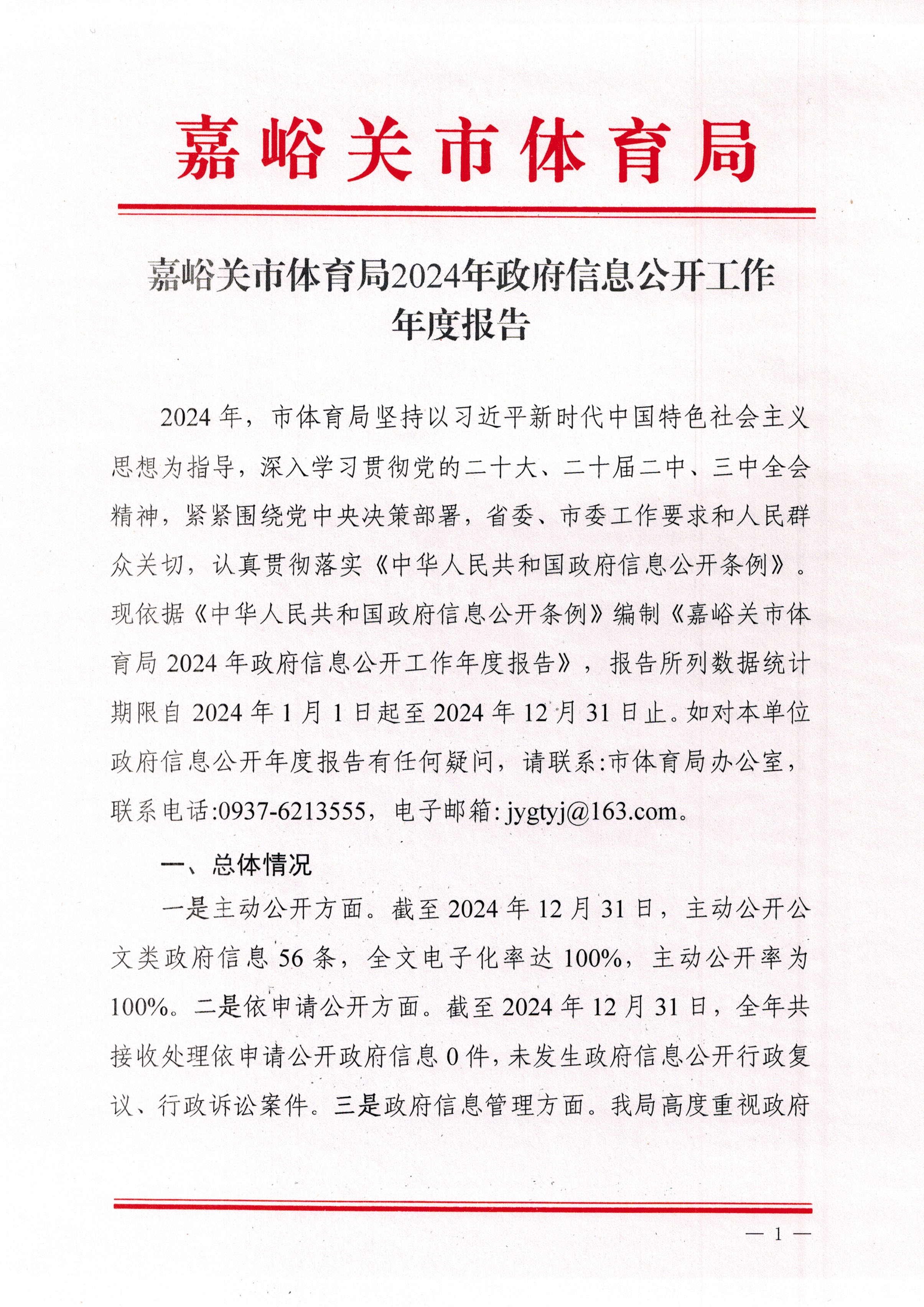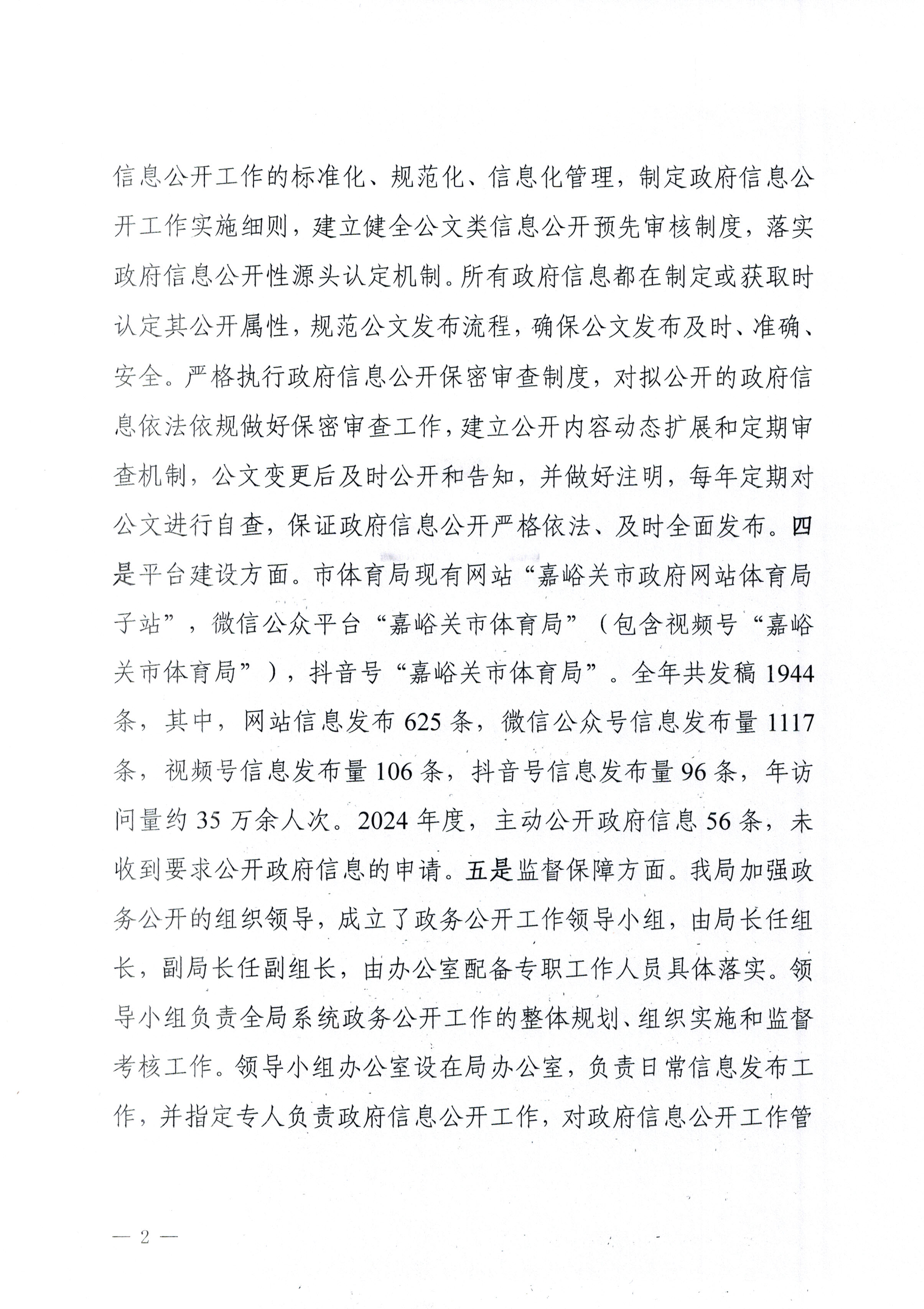 市体育局2024年政府信息公开工作年度报告