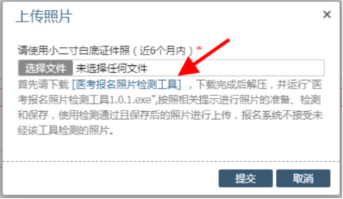(一)考生在网报系统上传个人小二寸白底证件照时,应按照系统提示内容下载并运行“医考报名照片检测工具”,网报系统只接受经该工具检测通过且保存后的照片。